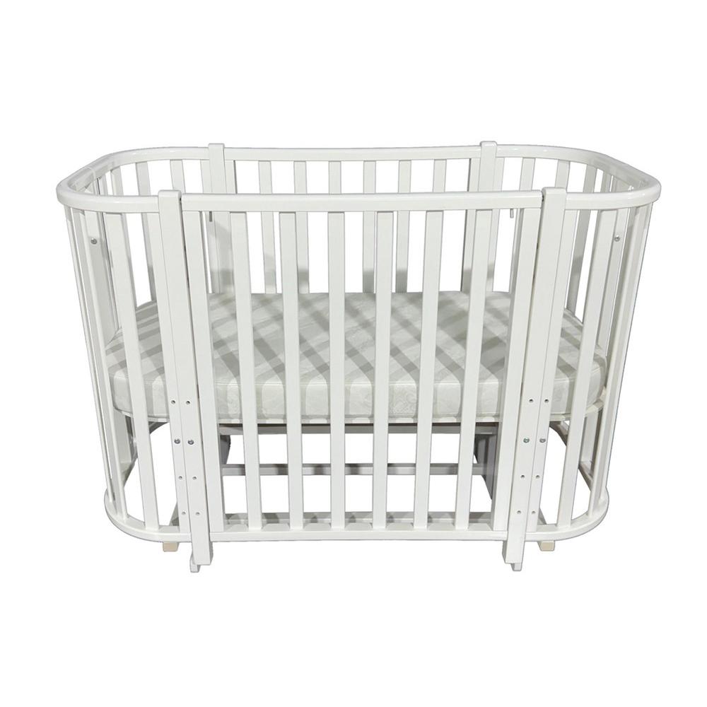 Кроватка Антел Esenia (поперечный маятник, колеса) (белый/белый) закругленные края, быстросъемная стенка / Есения
