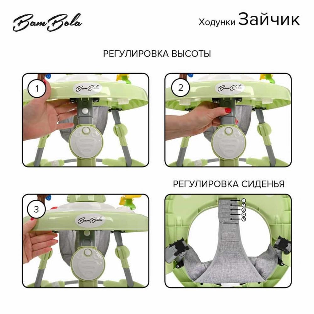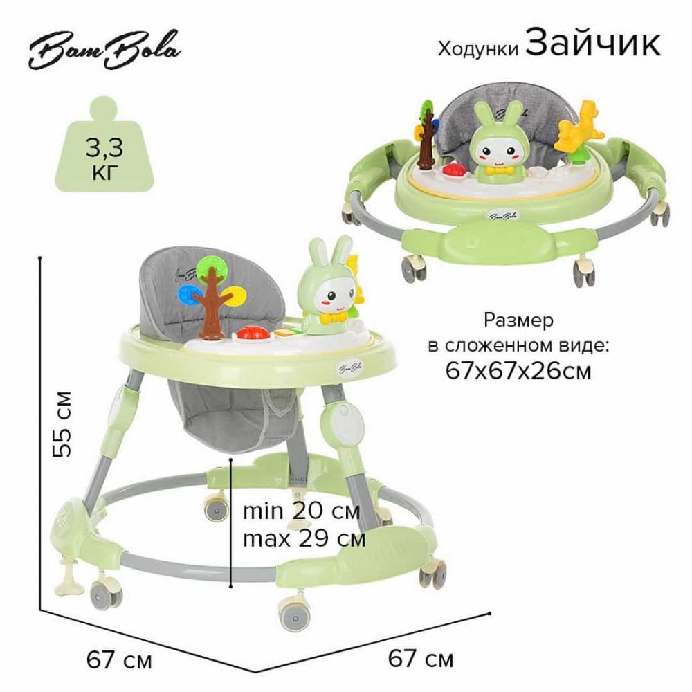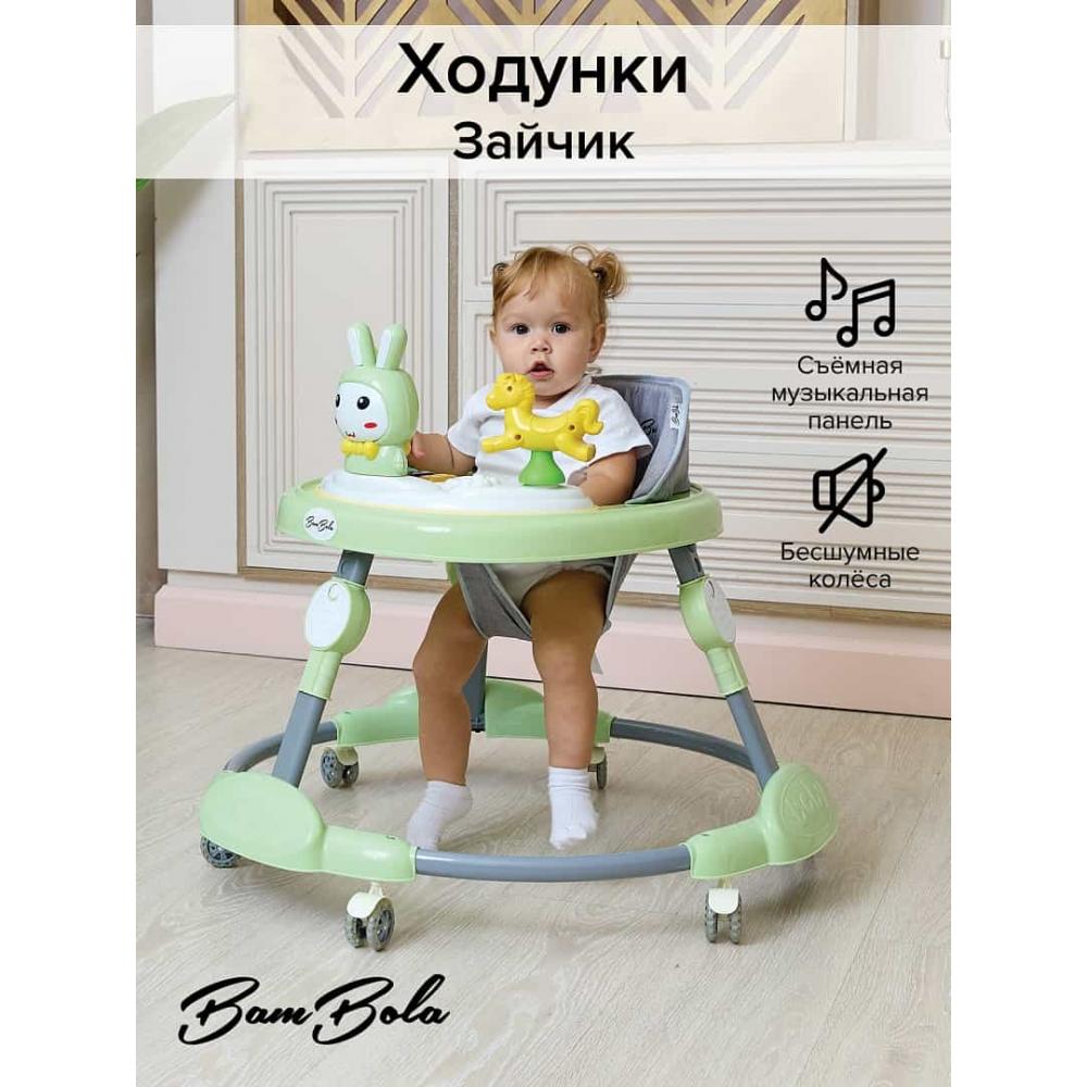 BAMBOLA Ходунки Зайчик 630 (круглые) (6 силик.кол,игр.,муз) (69*69*55) Soft Green/Зеленый