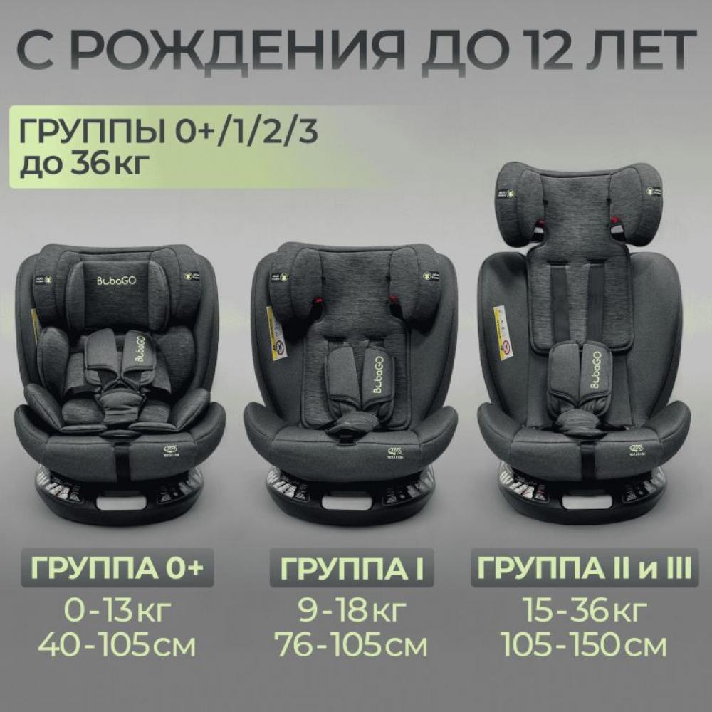 Автокресло Bubago Aspid BG 170-2 Серый (0-36 кг) (Isofix, поворот 360)