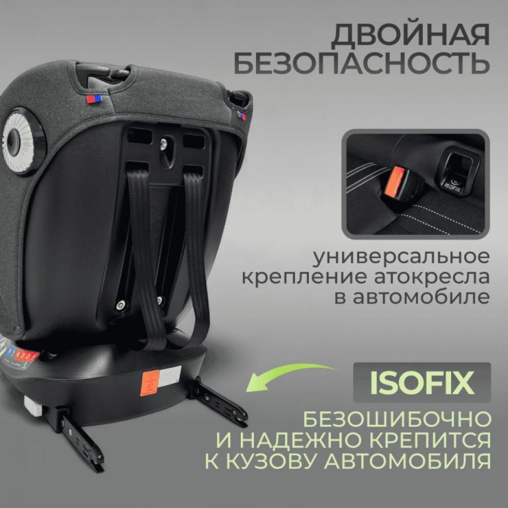 - Система ISOFIX обеспечивает жёсткую фиксацию кресла и исключает неправильную установку. Инновационная база позволяет разворачивать кресло на 360 градусов одним нажатием кнопки. Это делает посадку ребёнка удобнее и даёт гибкость в выборе направления установки: