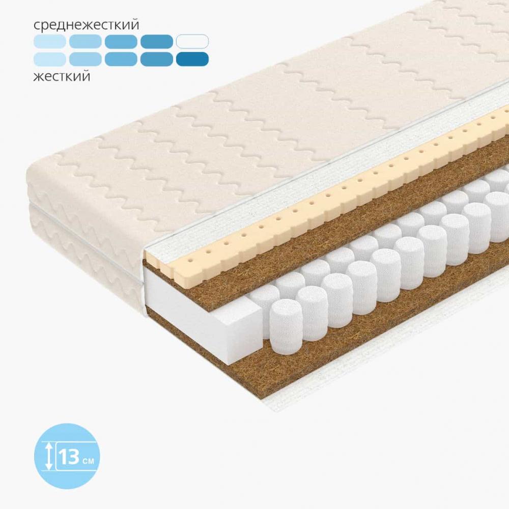 Полноценный высокий ортопедический матрас в миниатюре — независимые пружины Mini TFK, латекс и кокосовая койра.