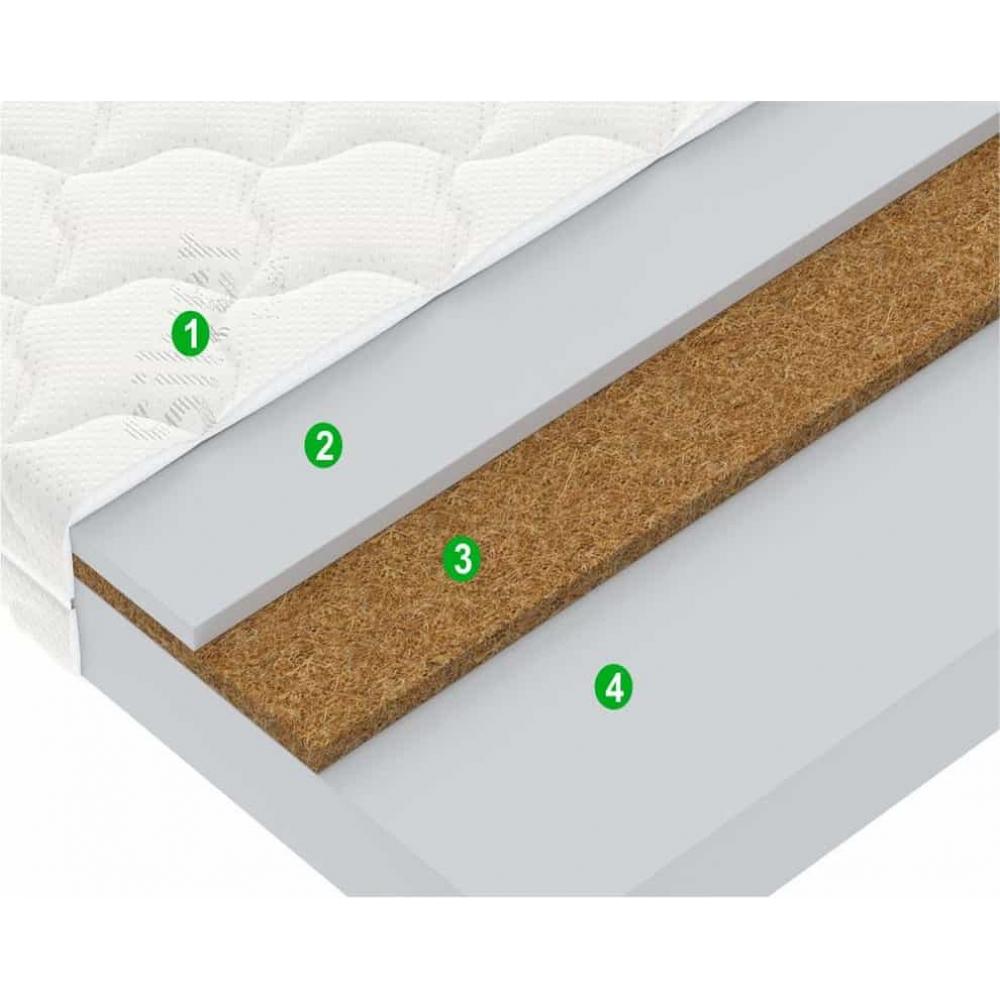 - Выполнен из современной дышащей пены в сочетании с жесткой кокосовой койрой для правильной поддержки позвоночника во время сна.