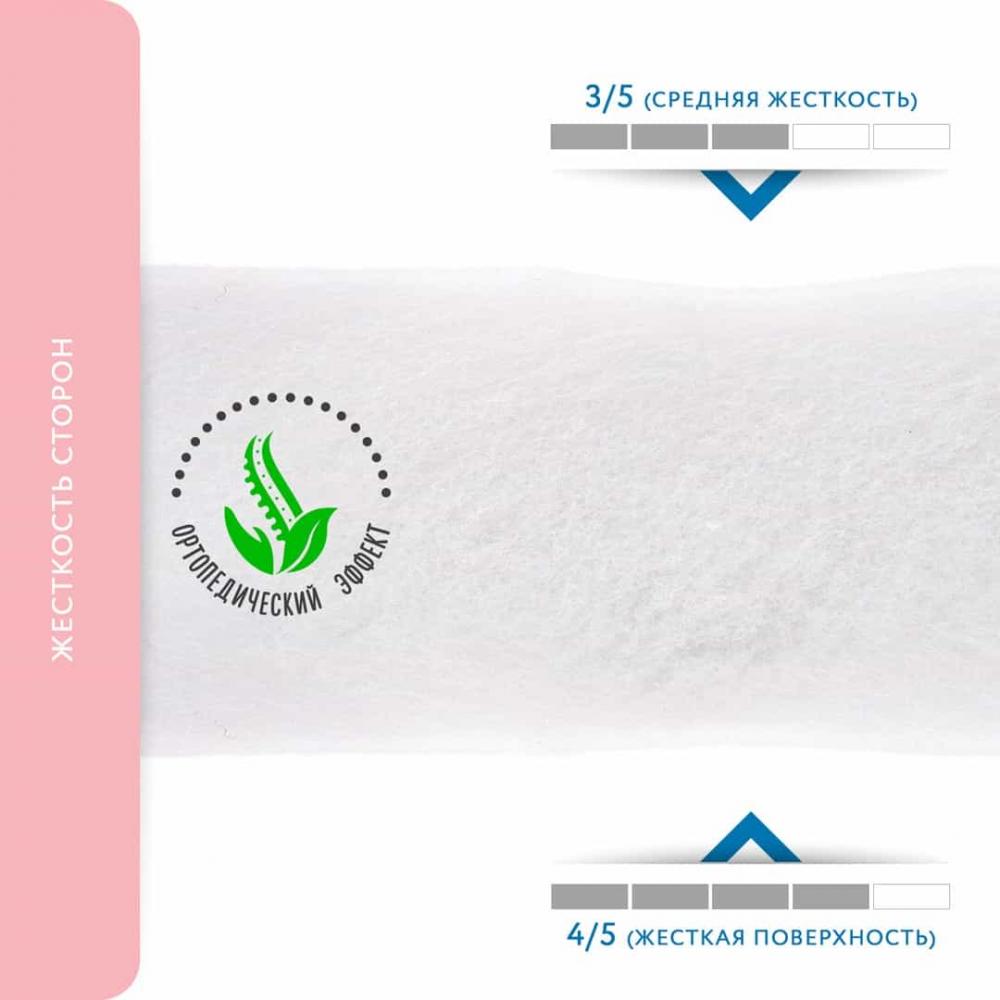 Волокна хорошо сопротивляются сжатию, напоминая работу пружин, что придает основе дополнительный ортопедический эффект. В данной модели используется холлофайбер повышенной плотности. Нежное и мягкое тканевое покрытие из однотонной стеганой микрофибры, также отлично вентилируется и прекрасно дополняет матрас. Выполненный из такой ткани чехол обладает высокой гигроскопичностью и легок в уходе.