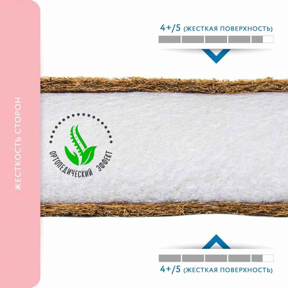 Кокосовое полотно, расположенное с двух стороны матраса, наилучшим образом подойдет для детей, ведь их формирующийся позвоночник нуждается в правильной поддержке во время сна. Гипоаллергенное полиэфирное волокно, которым скреплены кокосовые нити обеспечивает воздушные карманы, чем поддерживается оптимальная циркуляция воздуха, такая же, как и в плите Холлофайбера. Такое сочетание делает матрас подходящим для детей с аллергией на латекс, т.к. он не используется в данной технологии производства наполнителей.