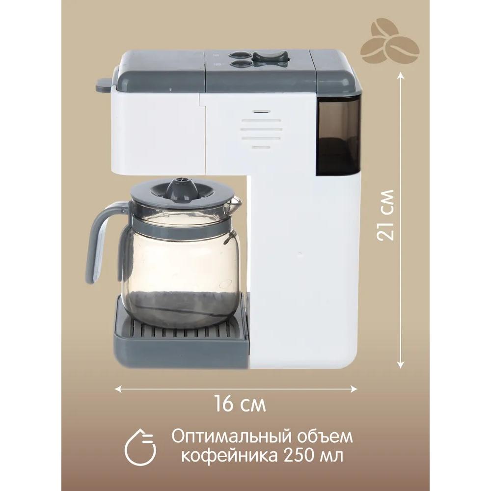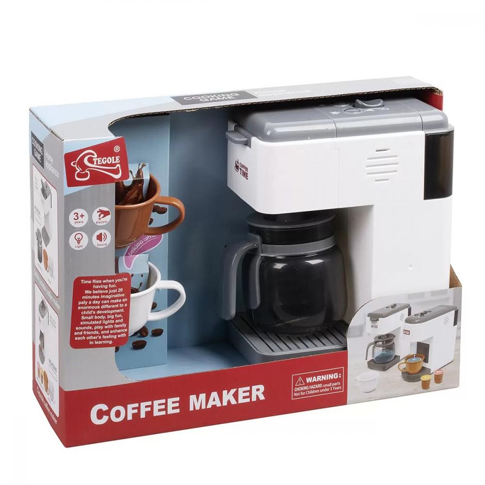 Детская игрушечная кофемашина - отличное дополнение игровой техники на кухне маленькой хозяйки. Свет, звук и аксессуары в виде чашек увлекут Ваших детей, которые с радостью будут готовить ароматный кофе. Кофемашина, кофейник, 2 чашки.