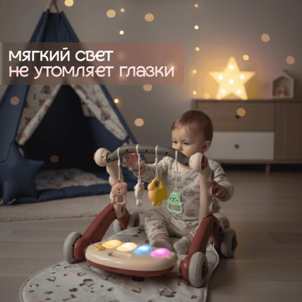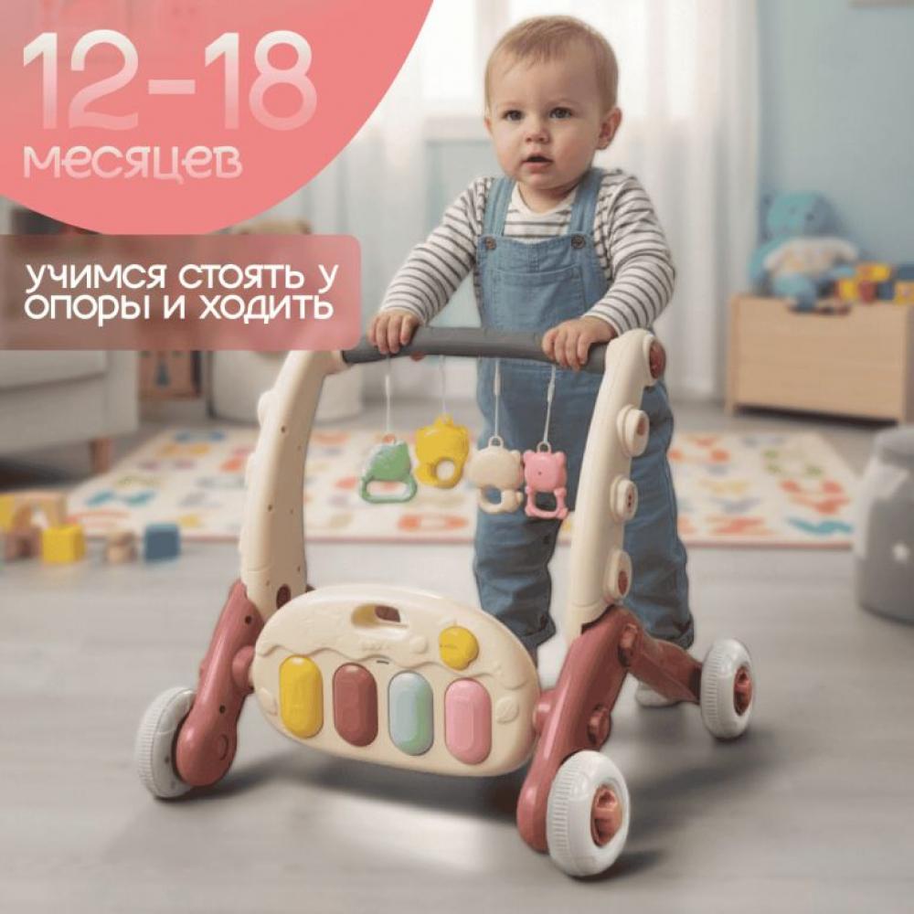 - Первые шаги. Прочные ходунки-каталка с регулируемой ручкой становятся надёжной опорой на этапе обучения ходьбе. Они помогают безопасно делать первые шаги и развивают уверенность.