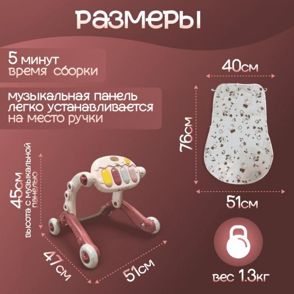 - Прочная устойчивая конструкция ходунков защищает ребёнка при первых шагах.