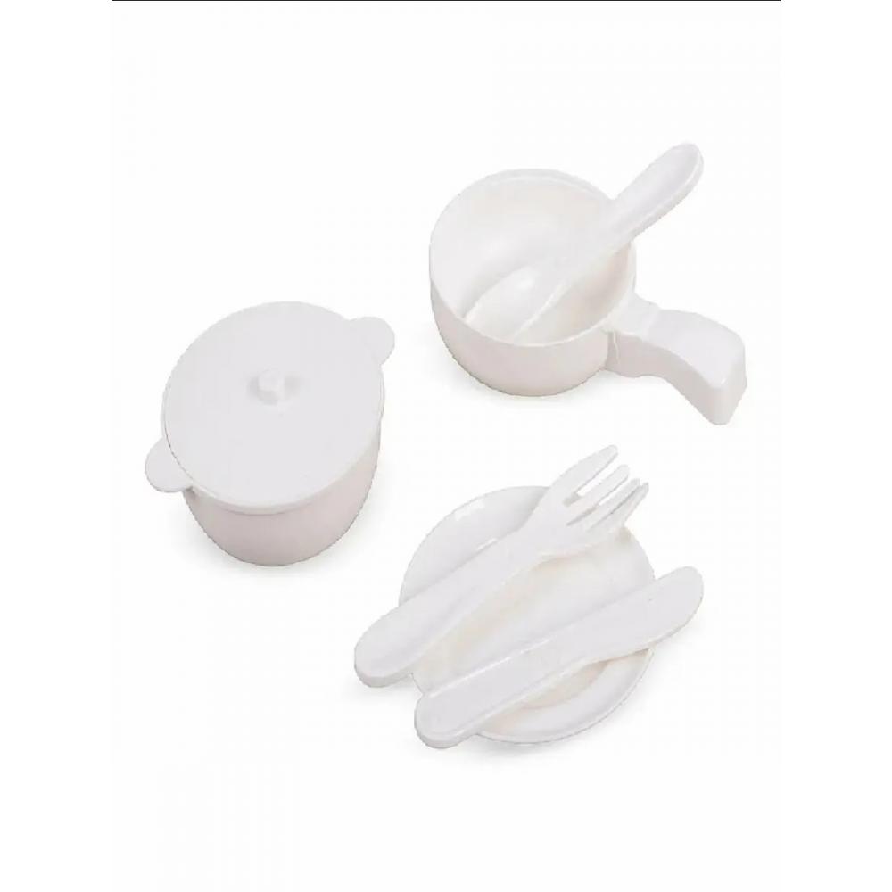 - В наборе ВСЕ необходимое: кастрюля с крышкой, сковорода с крышкой, тарелка и столовые приборы. Можно играт часами, придумывая разные сценарии.