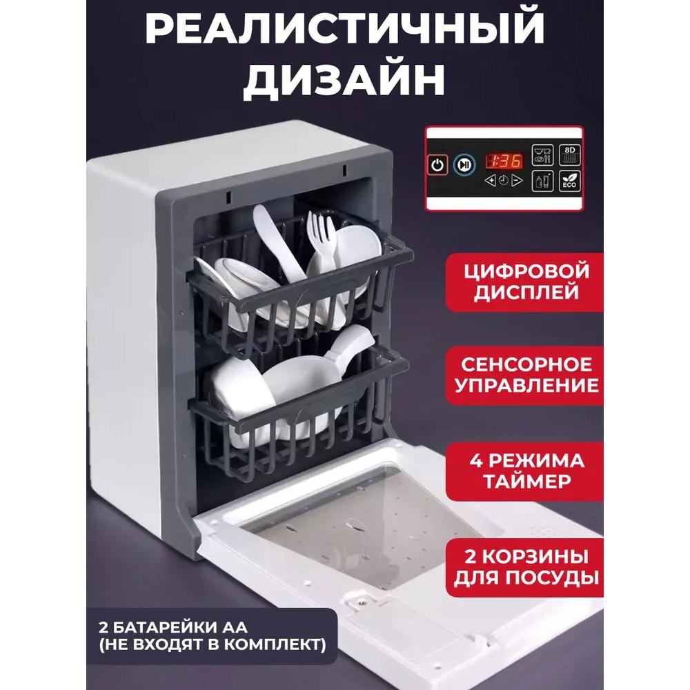 - Электронный таймер, 4 режима работы, звуки воды и завершения цикла — все как у настоящей техники! Яркая подсветка делает процесс еще увлекательнее. Это лучшая игрушка для сюжетно-ролевых игр в дом и семью.