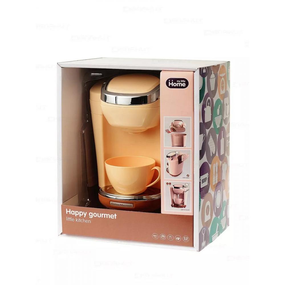 Детская игрушечная кофеварка работает, как настоящая. В неё можно заливать воду, затем нажав на кнопку начинается процесс приготовления кофе. Чашка наполняется, при этом издаются звуки приготовления и заграется световой индикатор.