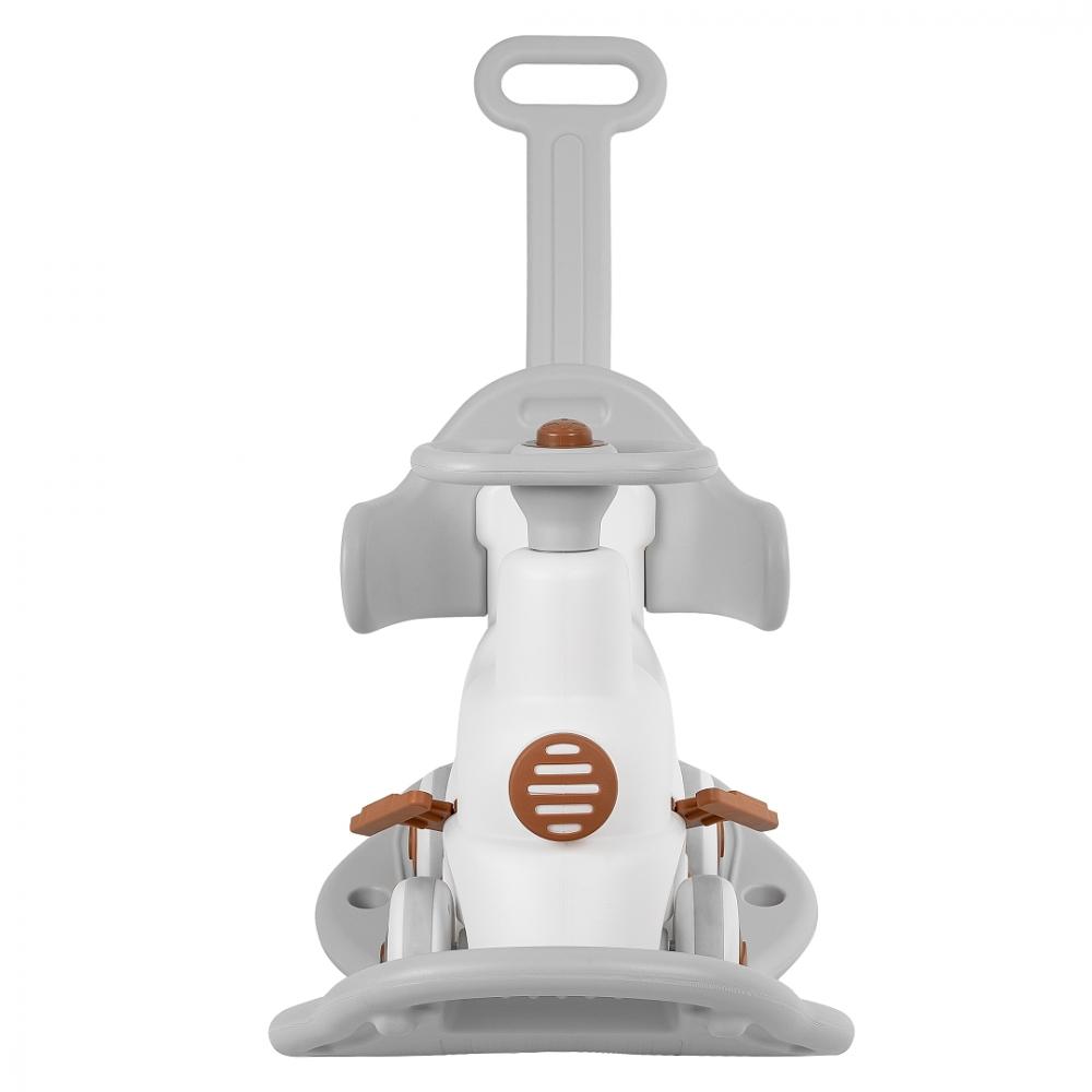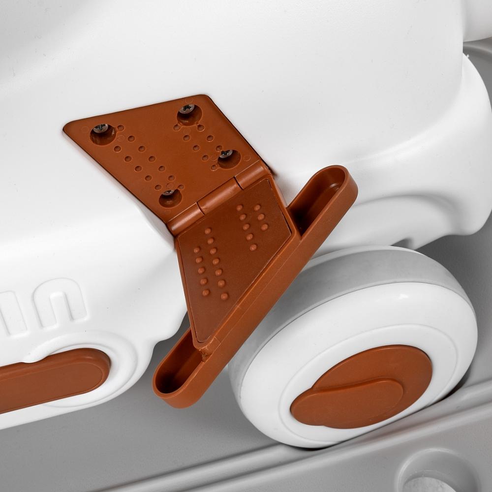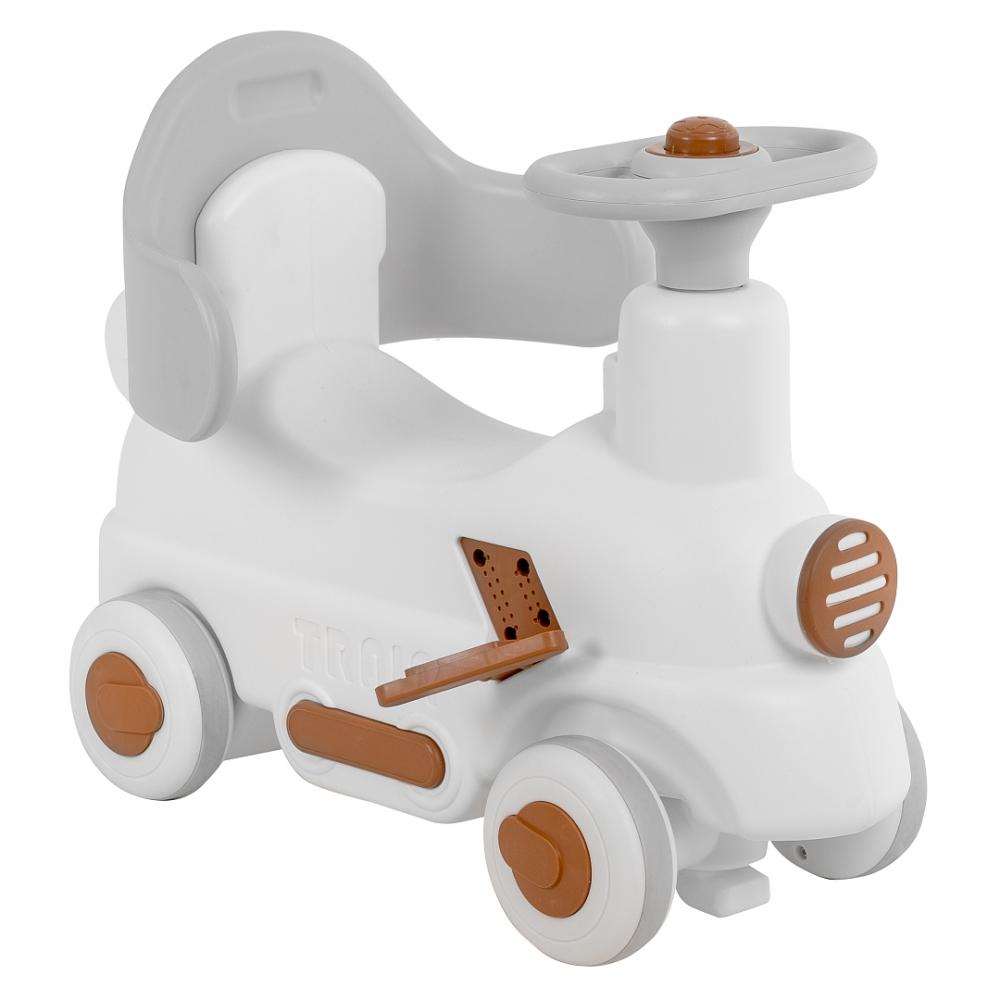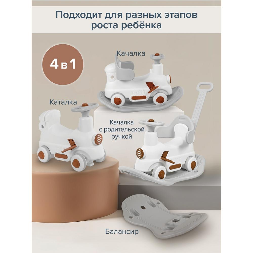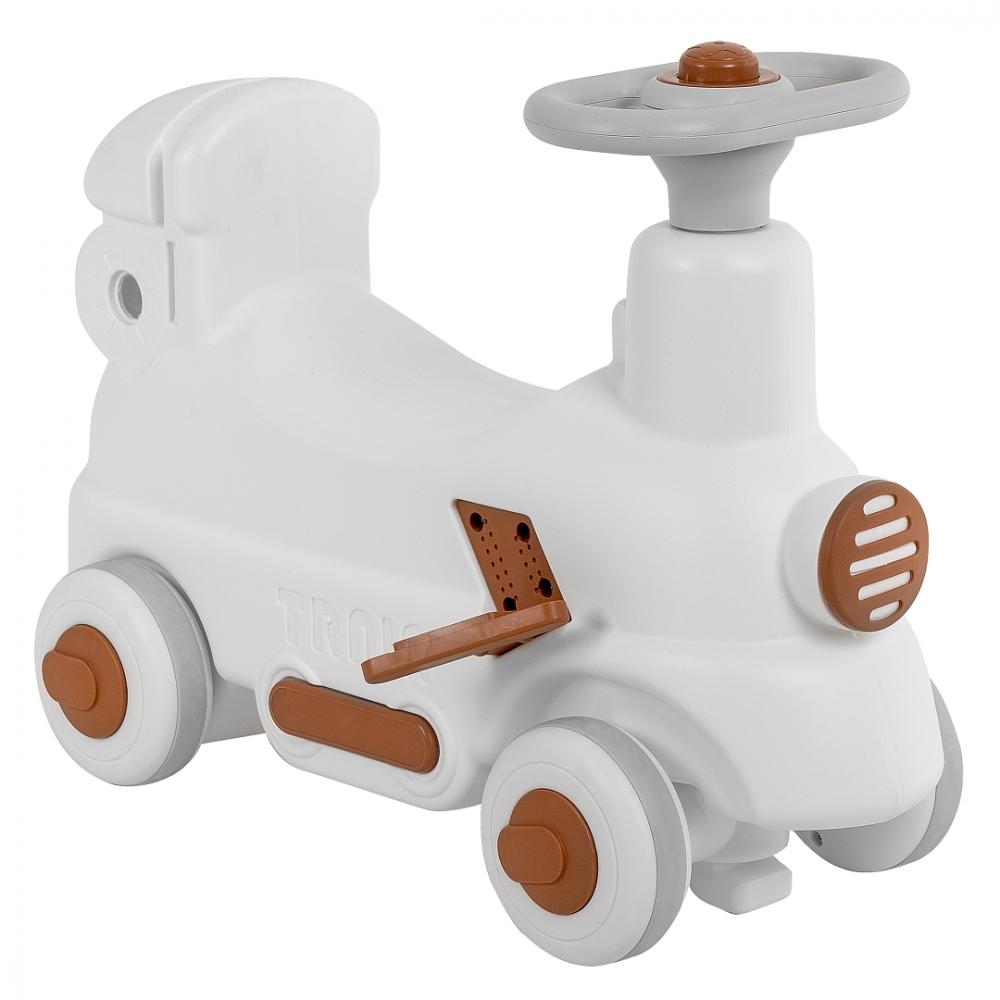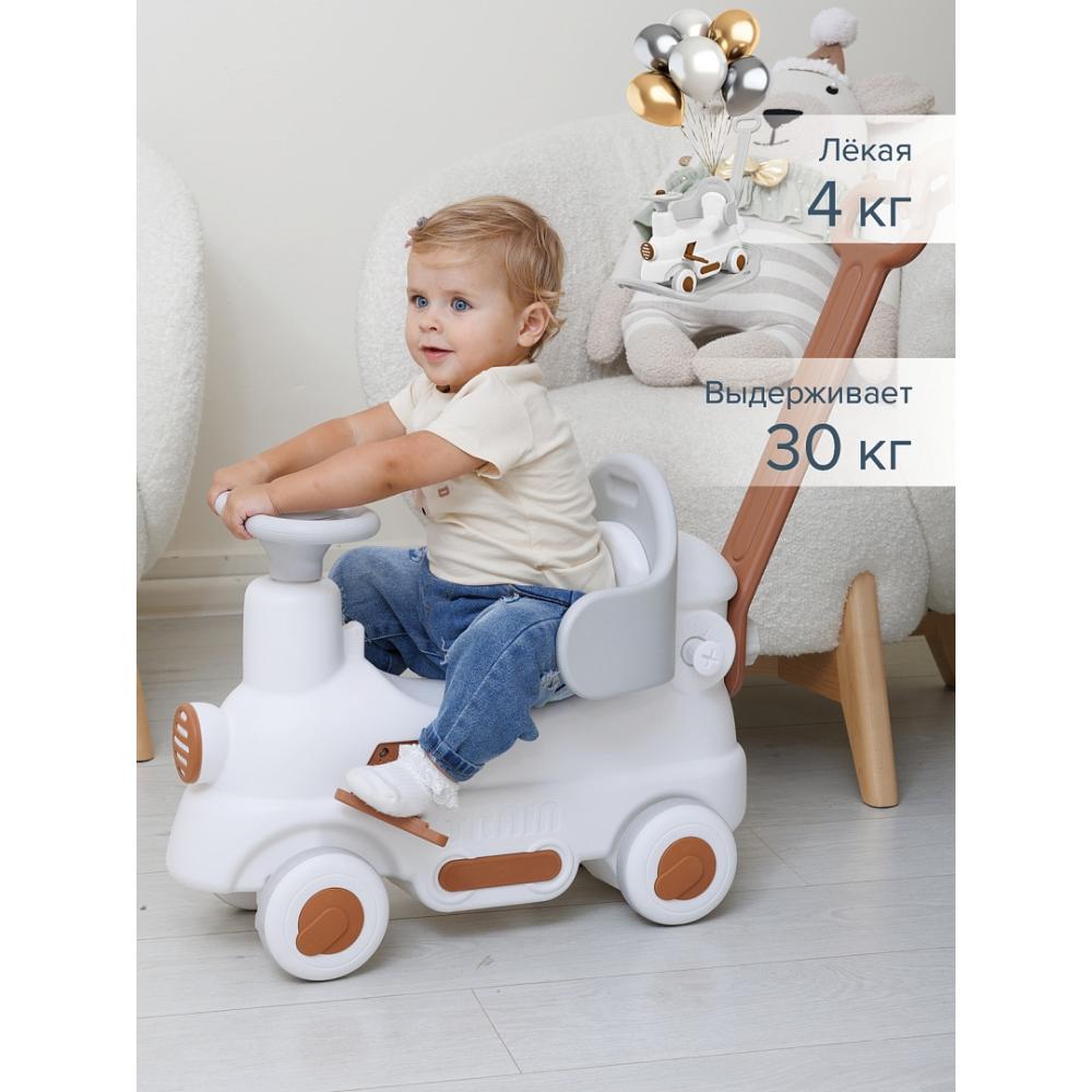 - Съемная родительская ручка превращает качалку-каталку в увлекательную детскую поезд-каталку. Складные педали выполнены таким образом, что ножка ребенка на них не скользила за счет особого покрытия.