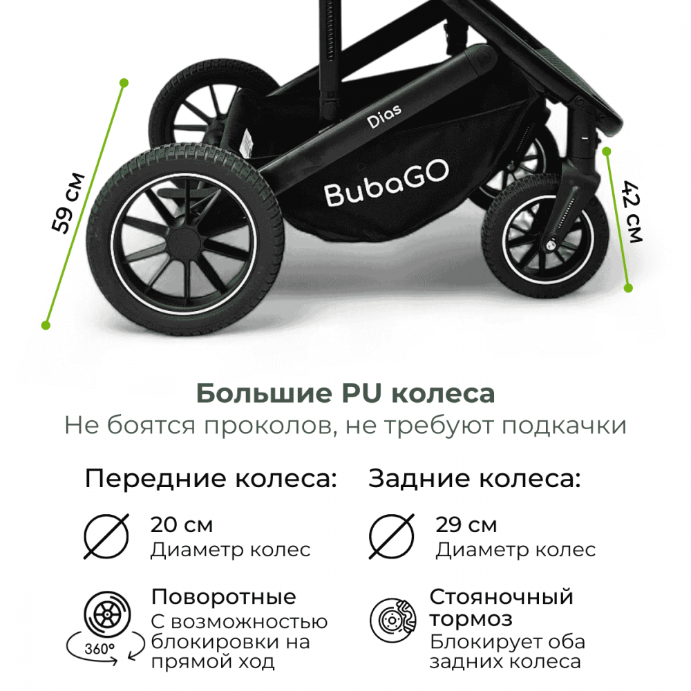 - Большие задние колёса из лёгкого ПУ и передние поворотные с фиксацией на прямой ход делают коляску устойчивой и проходимой даже на сложных участках.