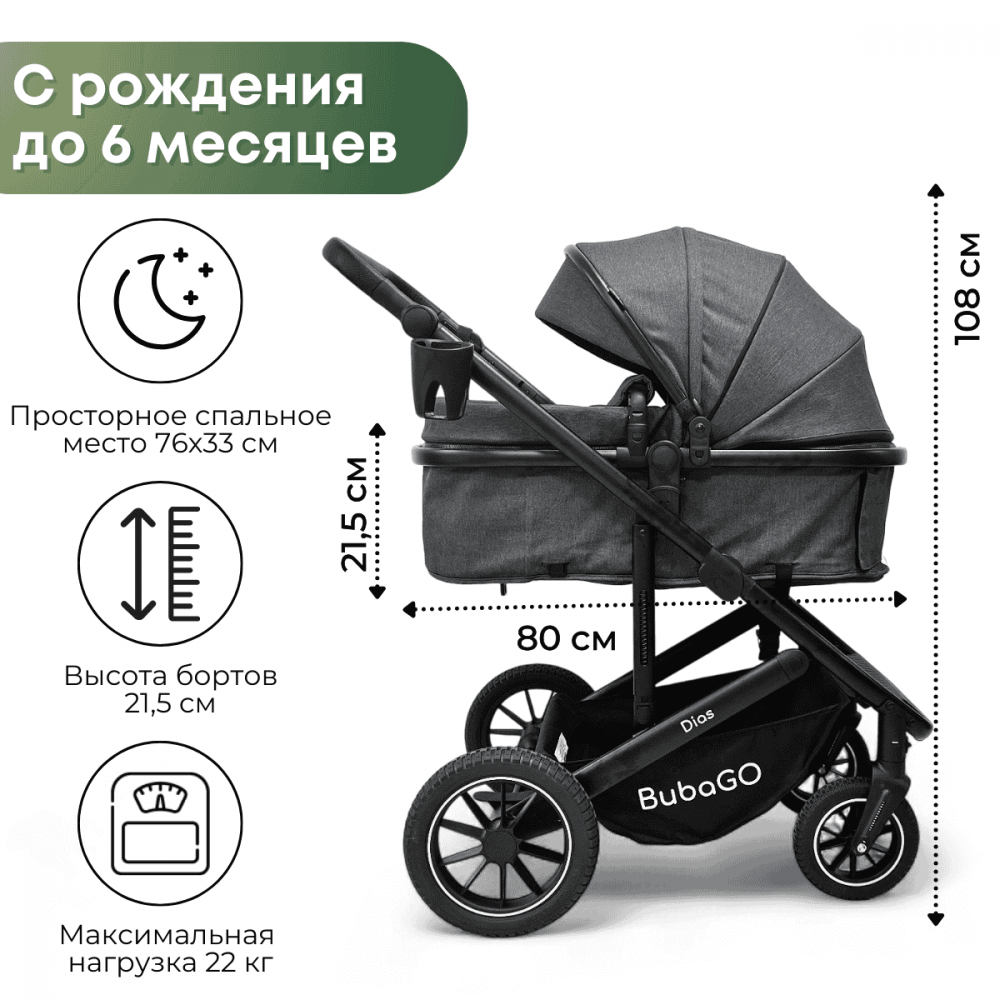 Коляска Bubago Dias 3в1 арт BG 167-2 Серый