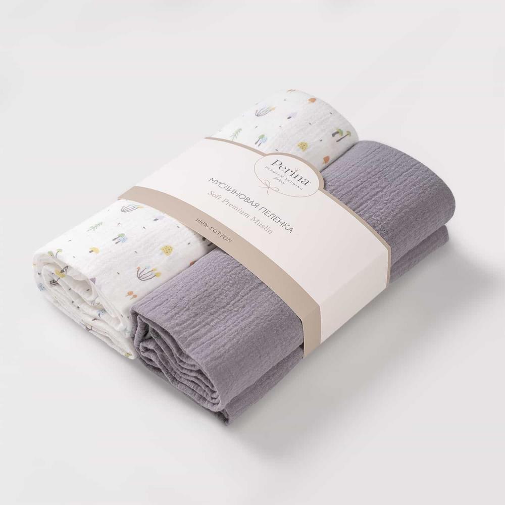Комплект пеленок Perina КМП.2-10-1.6х2.7 (Грибы/Серый) (двухслойная)