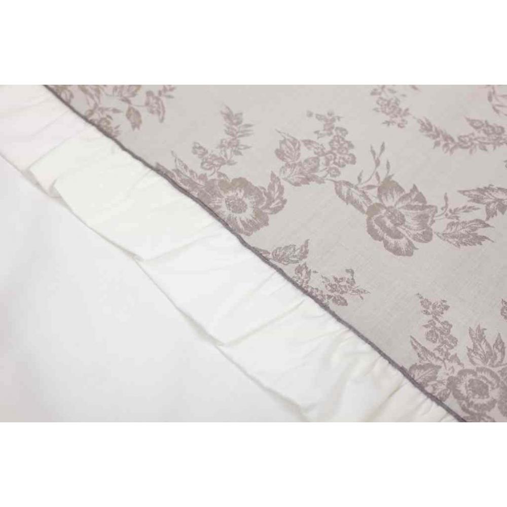 Воздушная молочная расцветка с цветочным принтом станет настоящей изюминкой интерьера. Изящные цветы и элегантные банты составляют нежный, даже нарядный образ. При этом комплект создает очень уютное, домашнее впечатление.
