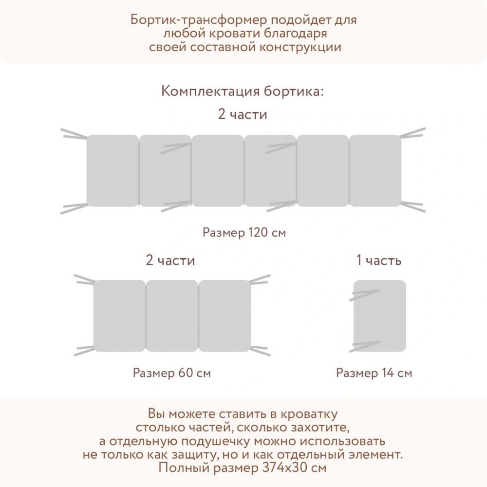 - Для удобства использования каждая часть бортика оснащена съемным чехлом на молнии. Теперь вы можете стирать только внешний слой, не затрагивая наполнитель.