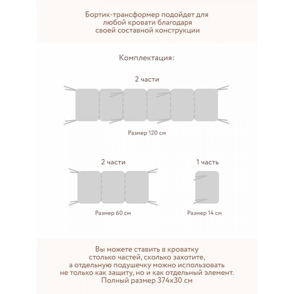 - Для удобства использования каждая часть бортика оснащена съемным чехлом на молнии. Теперь вы можете стирать только внешний слой, не затрагивая наполнитель.