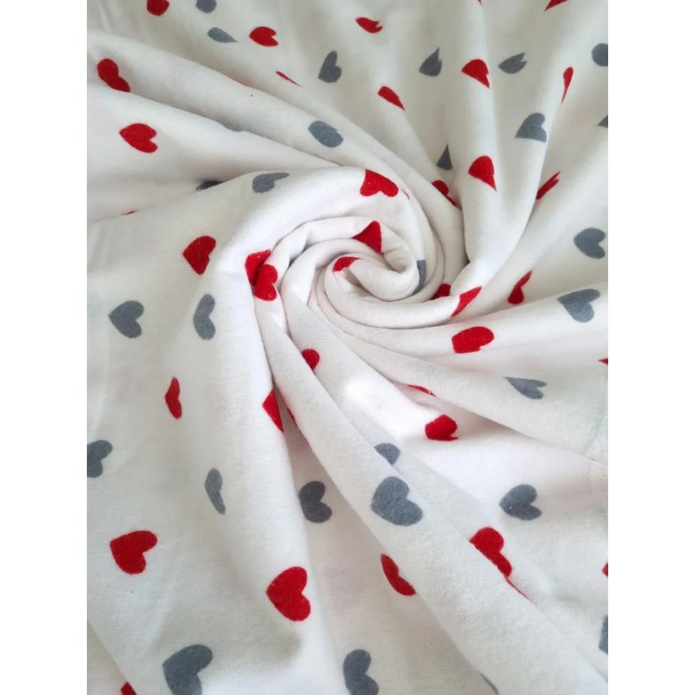 Непромокаемая многоразовая пеленка фланель 60х90 см Сердечки красно / серый