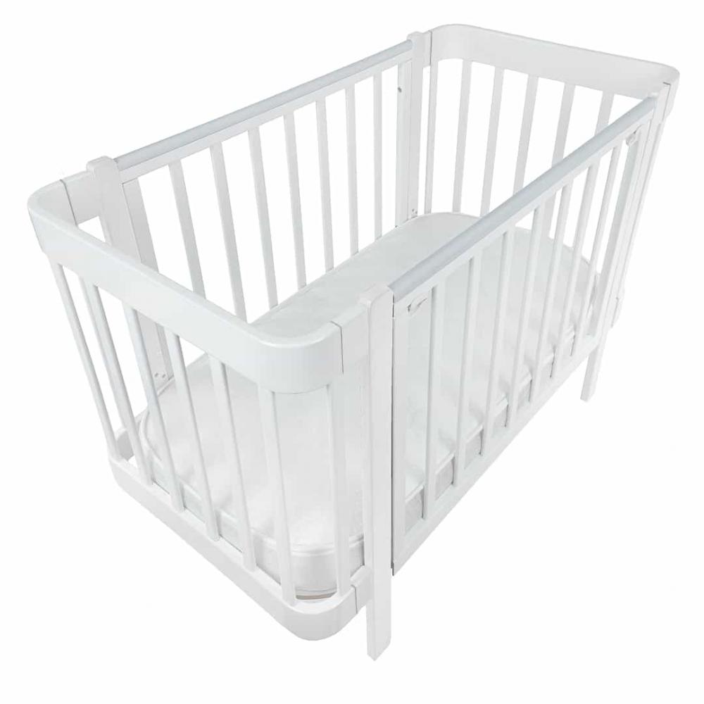 - Передняя авто-стенка с возможностью полного снятия за считаные секунды, для удобного доступа к младенцу.