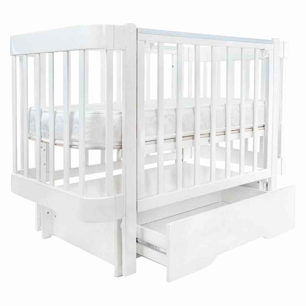Кроватка детская PITUSO Olivia (маятник, ящик, быстросъемная стенка) Белый-белый / Pit-101