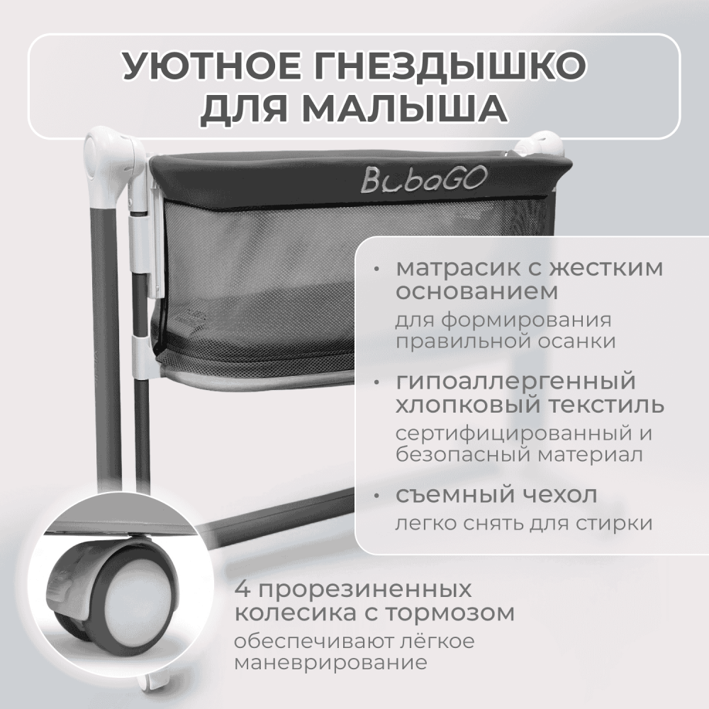 BubaGO Virelle объединяет сразу три решения в одном устройстве: приставная кроватка; электрокачель; манеж для игр и отдыха. BubaGO Virelle — это современная многофункциональная электроколыбель, которая объединяет три устройства в одном: приставная кроватка, электрокачель с интеллектуальным укачиванием, манеж для игр и отдыха малыша.