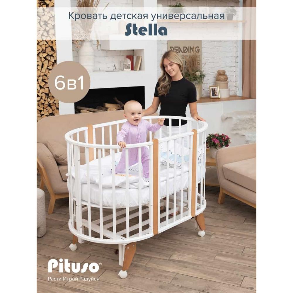 Код товара: J511-buk-1 Кроватка PITUSO Asti J 511 Белый-Бук 5/1 маятник (белая, вставки бук)