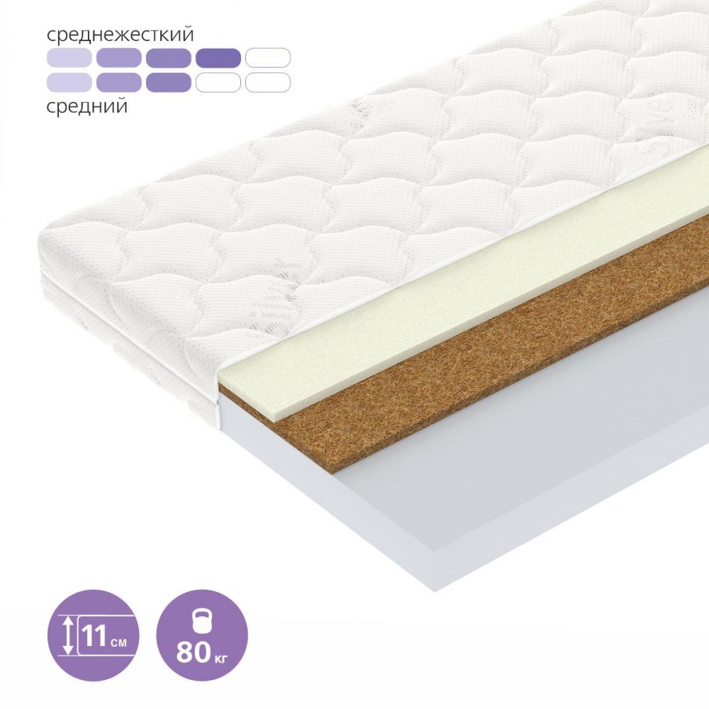- Выполнен из современной дышащей пены в сочетании с жесткой кокосовой койрой для правильной поддержки позвоночника во время сна.