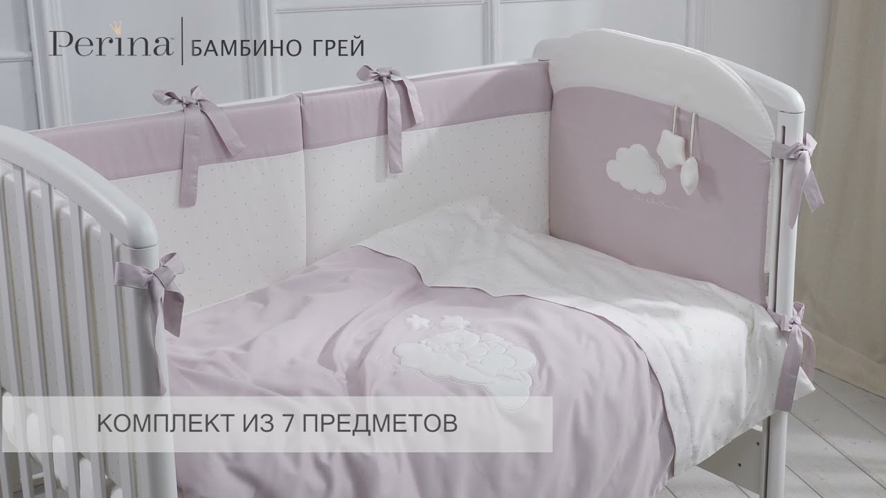 Комплект в кроватку Perina Бамбино Грей / серый 7 предметов (Эксклюзив) с балдахином Перина
