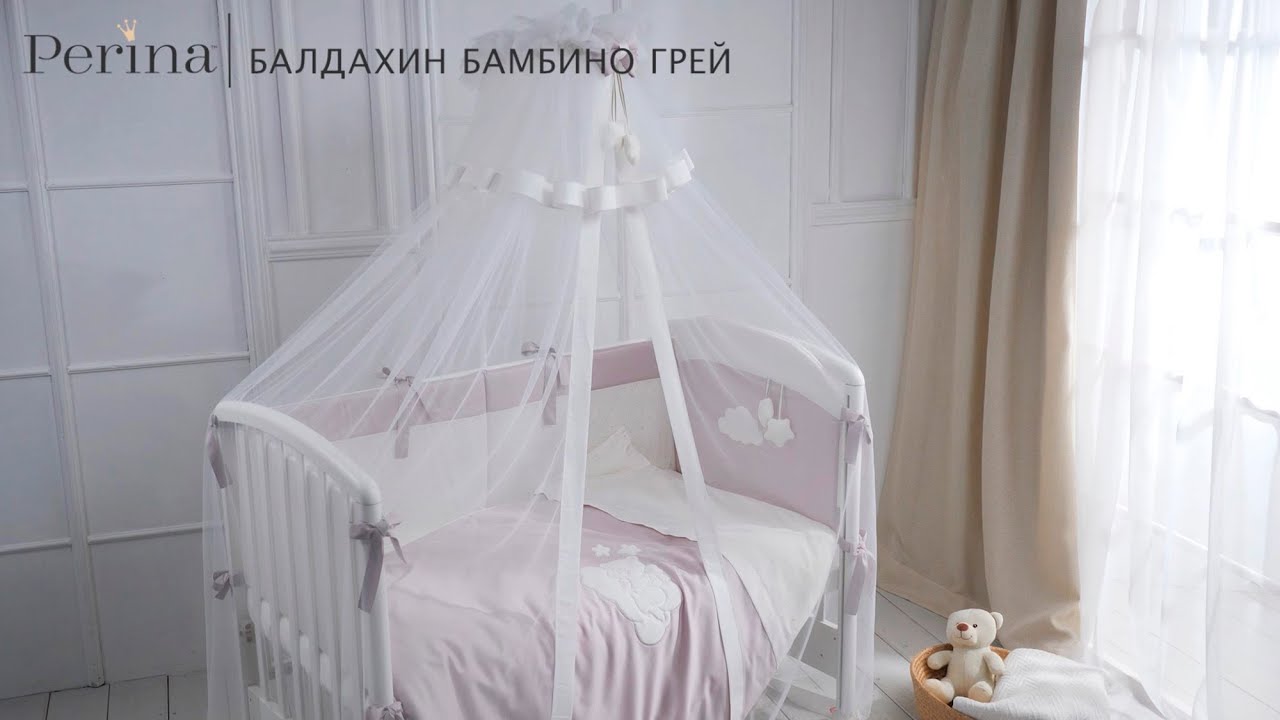 - БАЛДАХИН. Балдахин создаст особую атмосферу в детской спальне. Он совершенно не мешает доступу воздуха, и за счет своей длины 180 см и ширины 450 см полностью накрывает кроватку и защищает малыша от пыли и света. Легкая и гладкая сетка-вуаль прекрасно держит форму, за счет качества материала она не деформируется