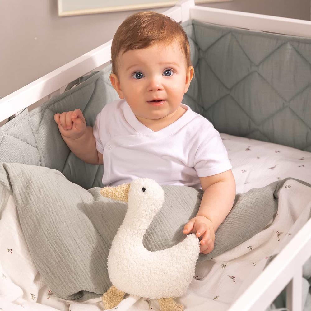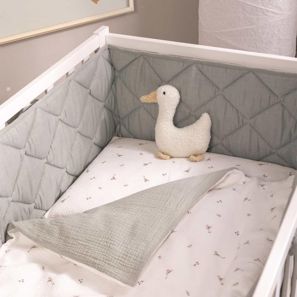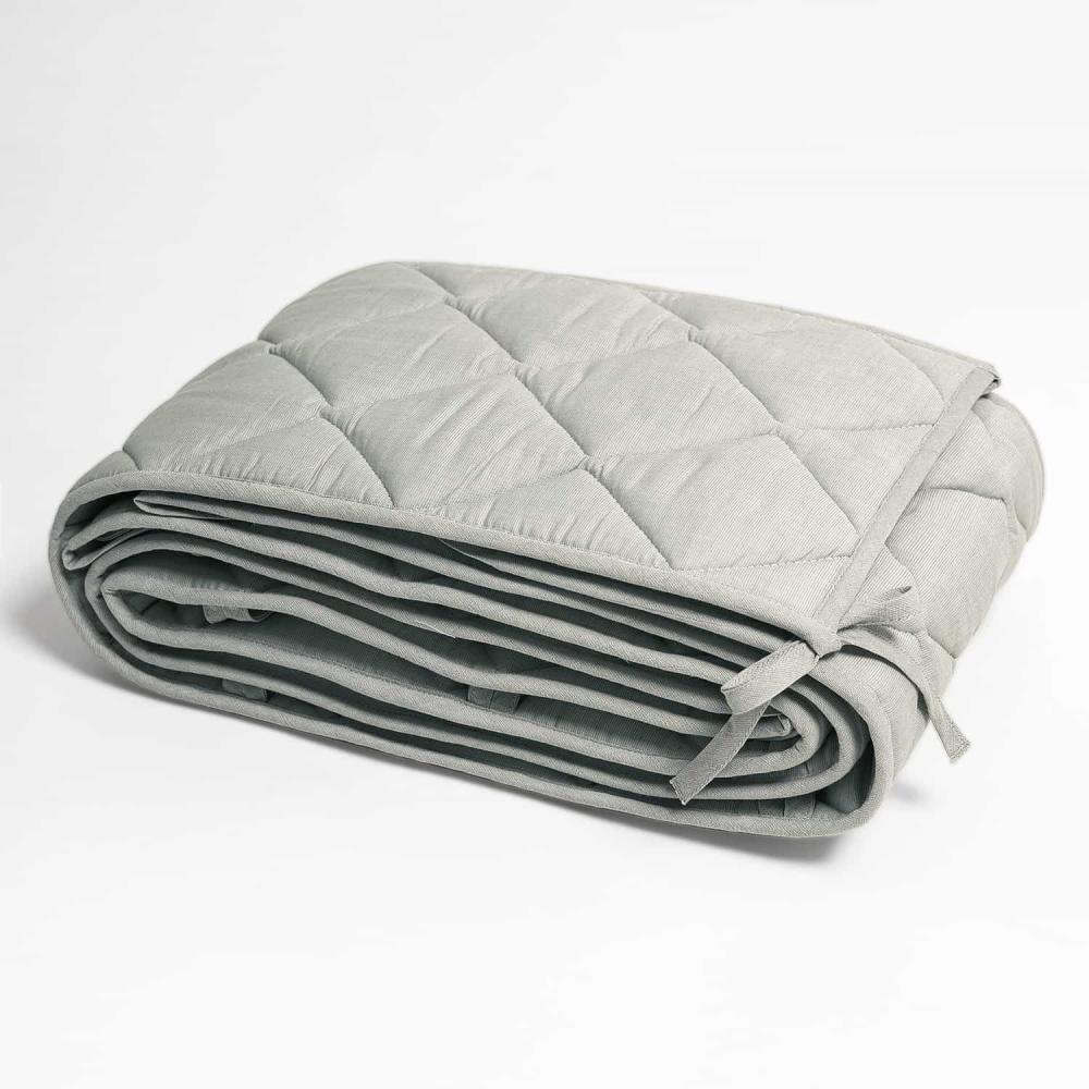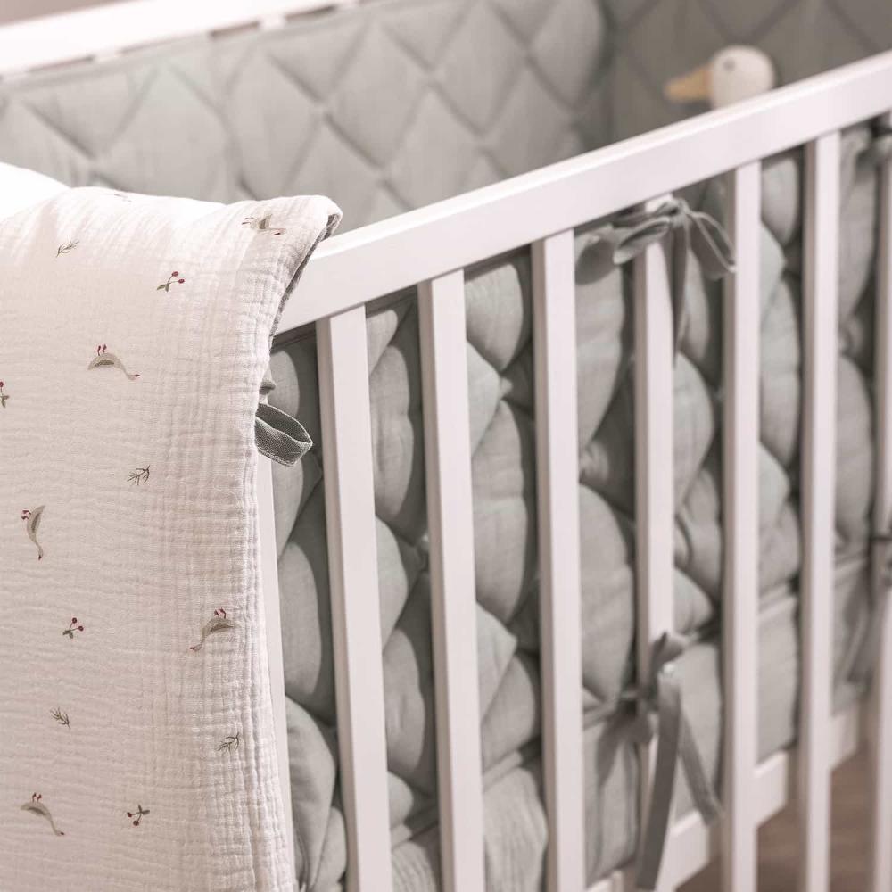 - Стеганая структура делает бортики плотными и упругими, но при этом гибкими, чтобы легко принять нужную форму по периметру кроватки.