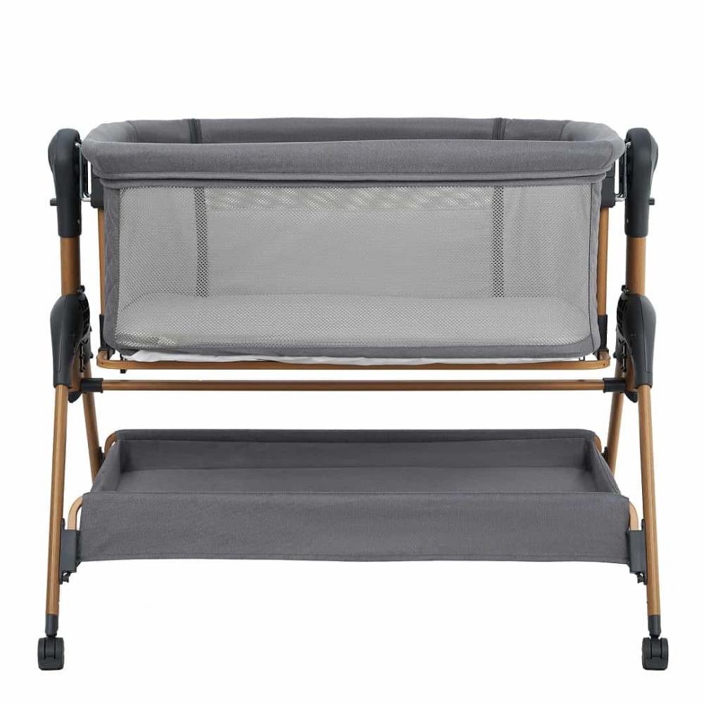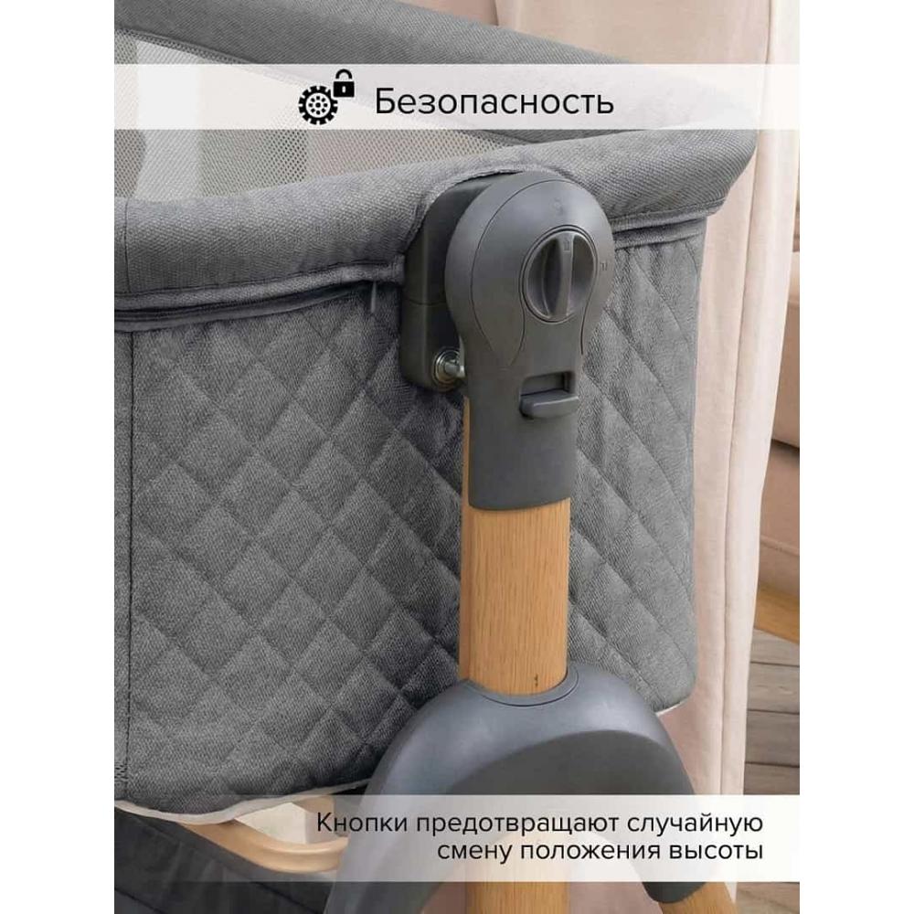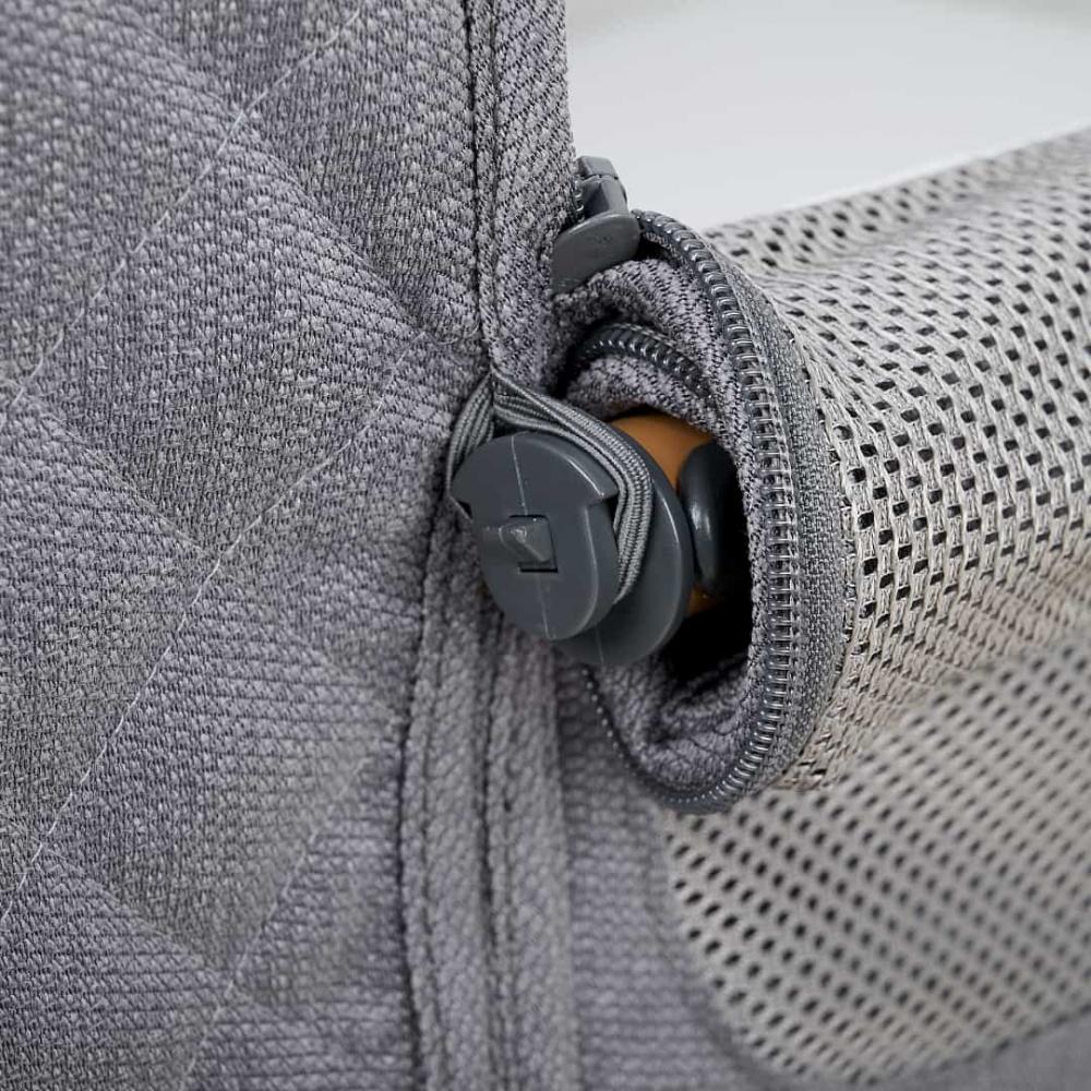 - Всегда рядом: Специальная система крепления (ремни) позволяет быстро приставить колыбель вплотную к вашей кровати. Боковой бортик опускается на молнии, создавая единое пространство.