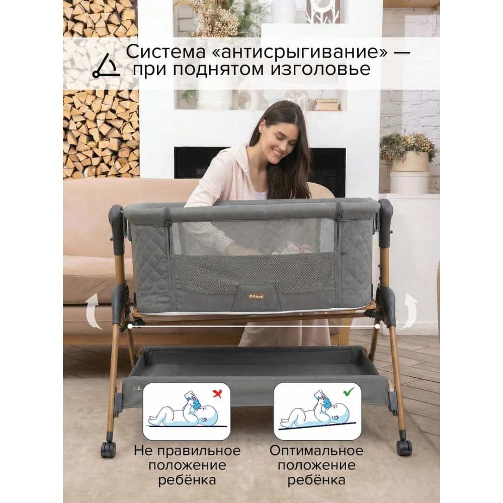 Приставная колыбель Pituso Lila — спите спокойно вместе с малышом. Pituso Lila — это умное решение для комфортного и безопасного совместного сна. Колыбель надежно фиксируется на кровати родителей, позволяя вам быть рядом с ребенком 24/7. Больше не нужно вставать по ночам: достаточно протянуть руку, чтобы покормить или успокоить малыша.