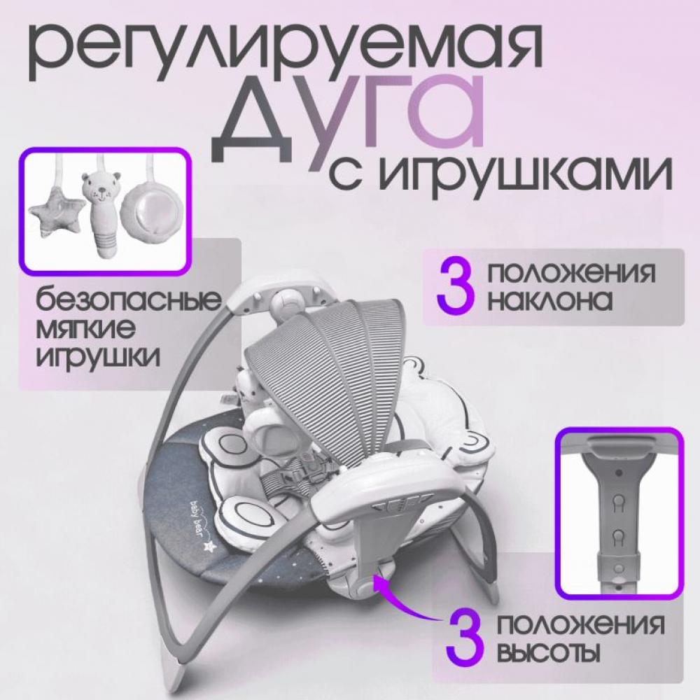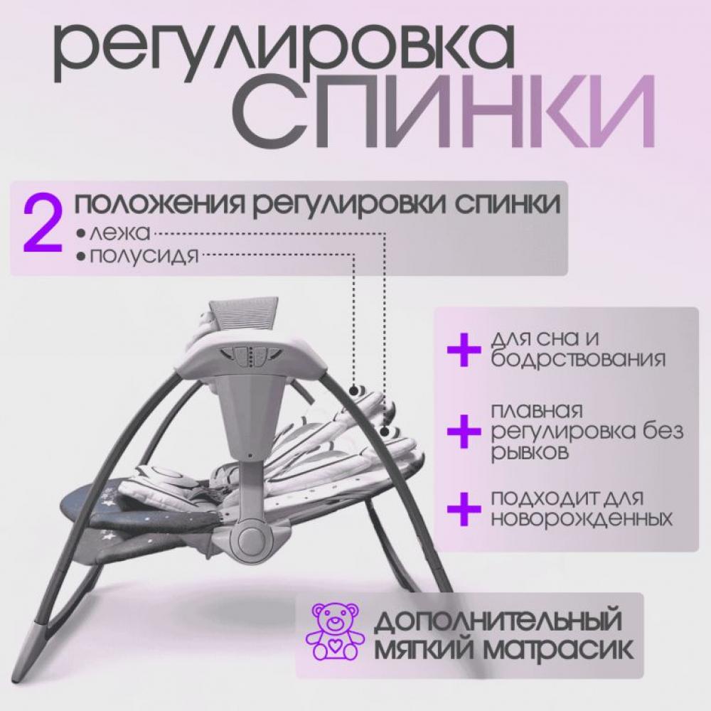 Детский шезлонг электрокачели Bubago Mastela BG 197-2 Серый