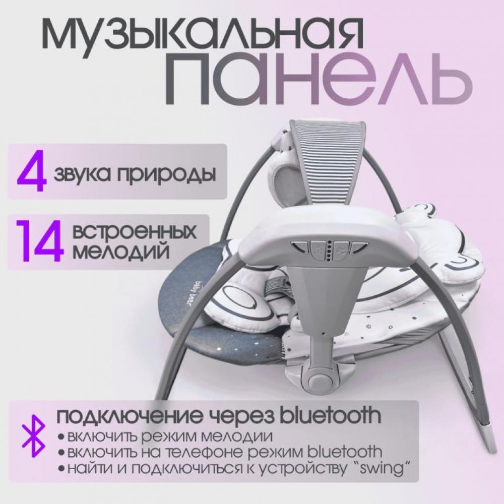 - также электрокачели можно подключить к смартфону через Bluetooth, чтобы включать любимые мелодии или спокойную музыку прямо со своего телефона.