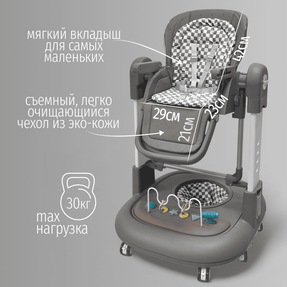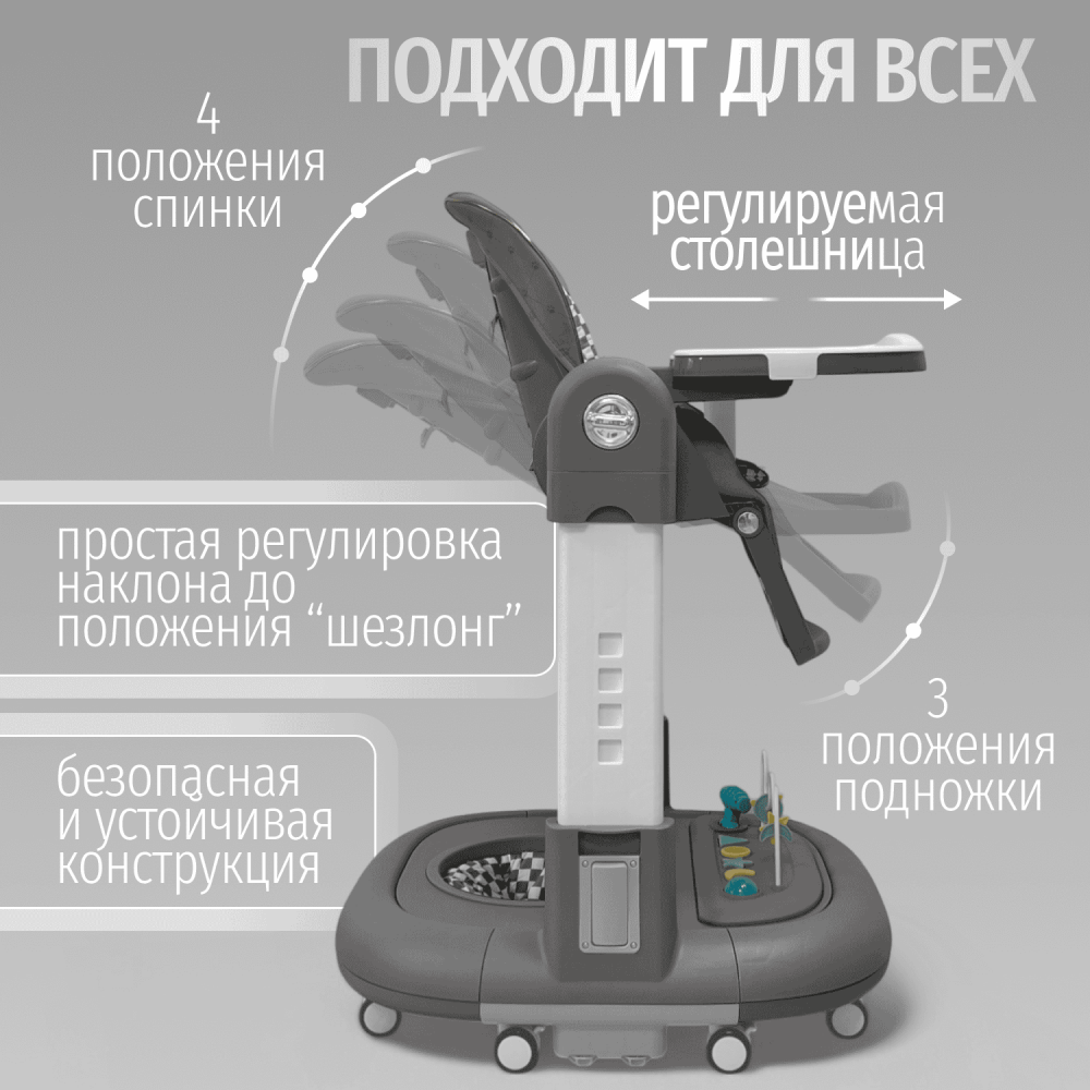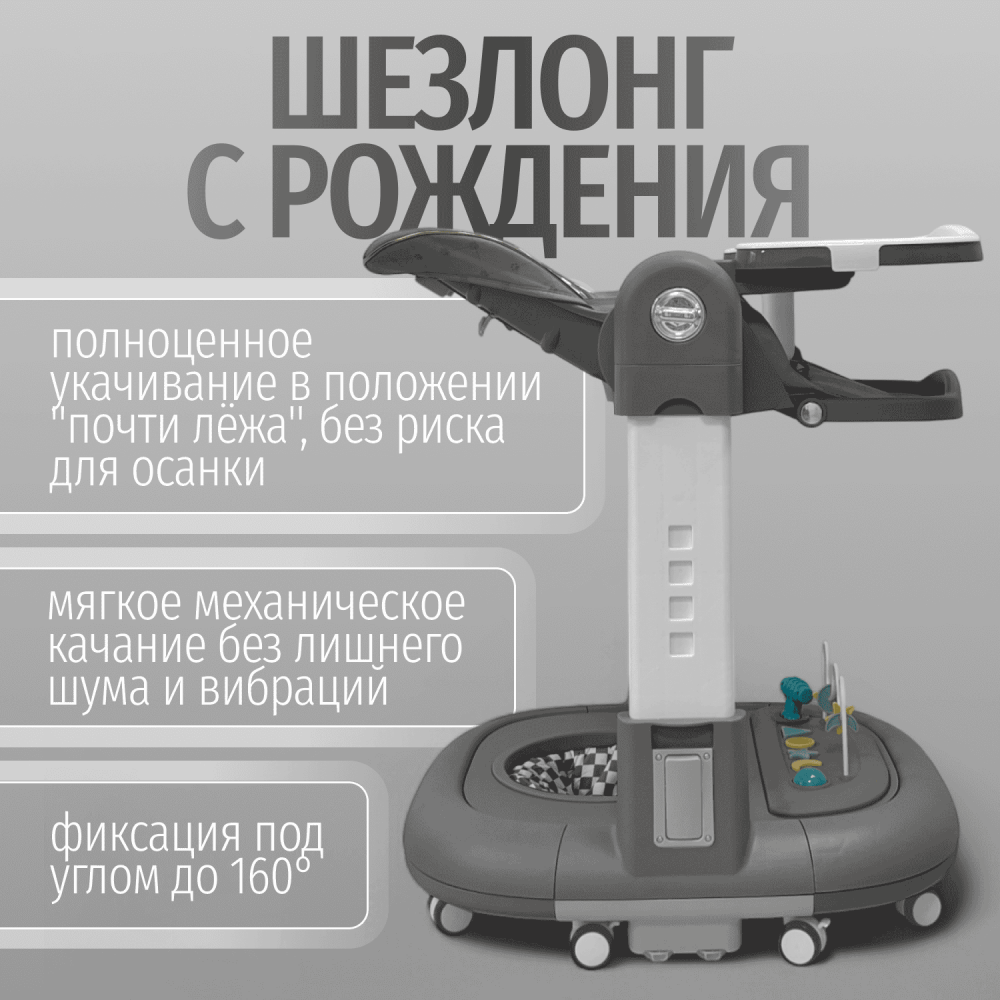 - 3. Комфорт и защита вашего чада. Регулируемый наклон спинки и удобный съёмный столик обеспечивают идеальные условия независимо от возраста ребенка. Пятиточечный ремень безопасности гарантирует надежную фиксацию, а материалы изделия просты в уходе благодаря легкой стирке чехлов.