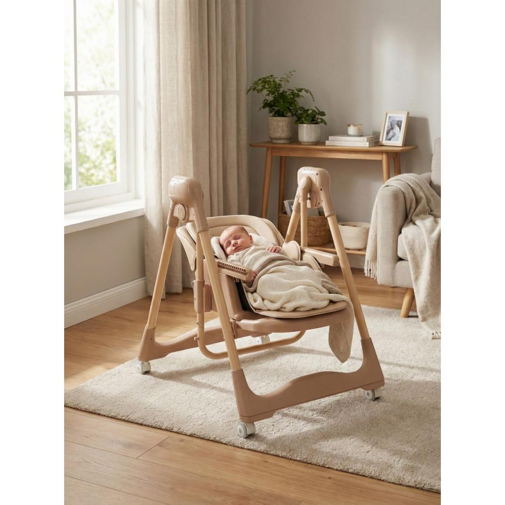 Стульчик-трансформер — идеальный выбор для семей с детьми, ведь он обеспечивает максимум комфорта и функциональности на каждом этапе развития ребенка, начиная с первого знакомства с твердой пищей и заканчивая активными играми. Это многофункциональный детский стульчик-электрокачели 4 в 1, который сопровождает малыша с рождения (0+) и на годы вперед, выдерживая нагрузку до 15 кг.