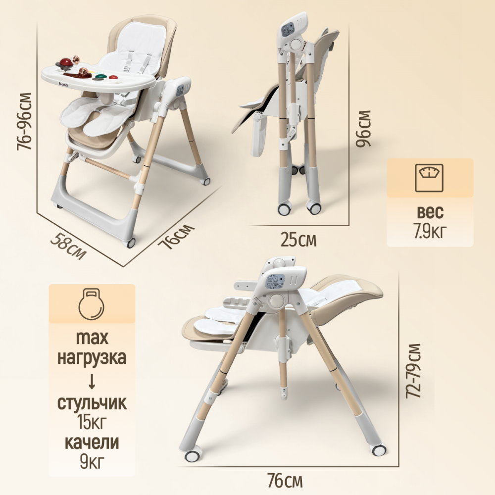 Стульчик для кормления Bubago Frida BG 174-2 Бежевый / Качели, игрушки