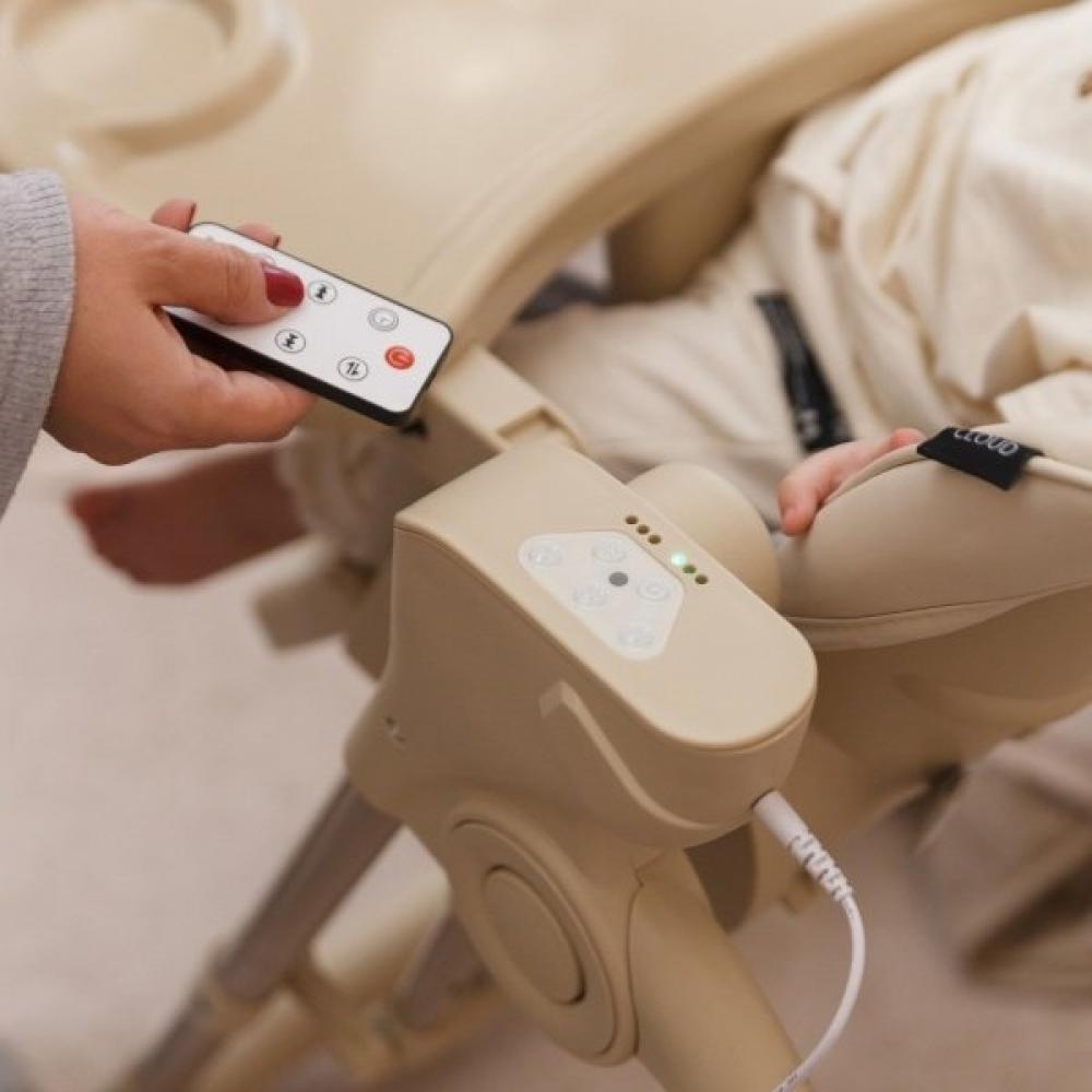 Стульчик для кормления Martin Noir Cloud — универсальное решение для родителей, объединяющее функции электрокачелей, механических качелей, шезлонга и стульчика для кормления.