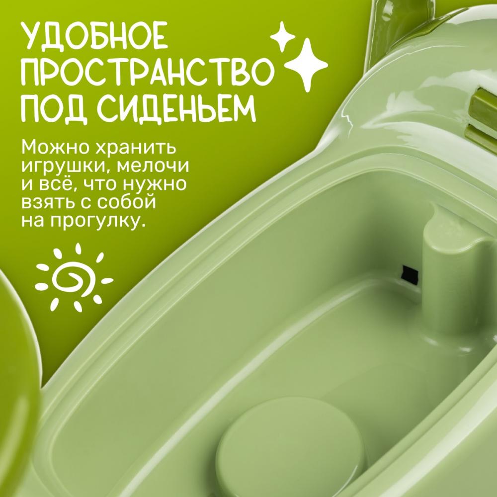 - Конструкция включает руль для управления, подножку и высокую спинку, что поддерживает комфорт во время катания.