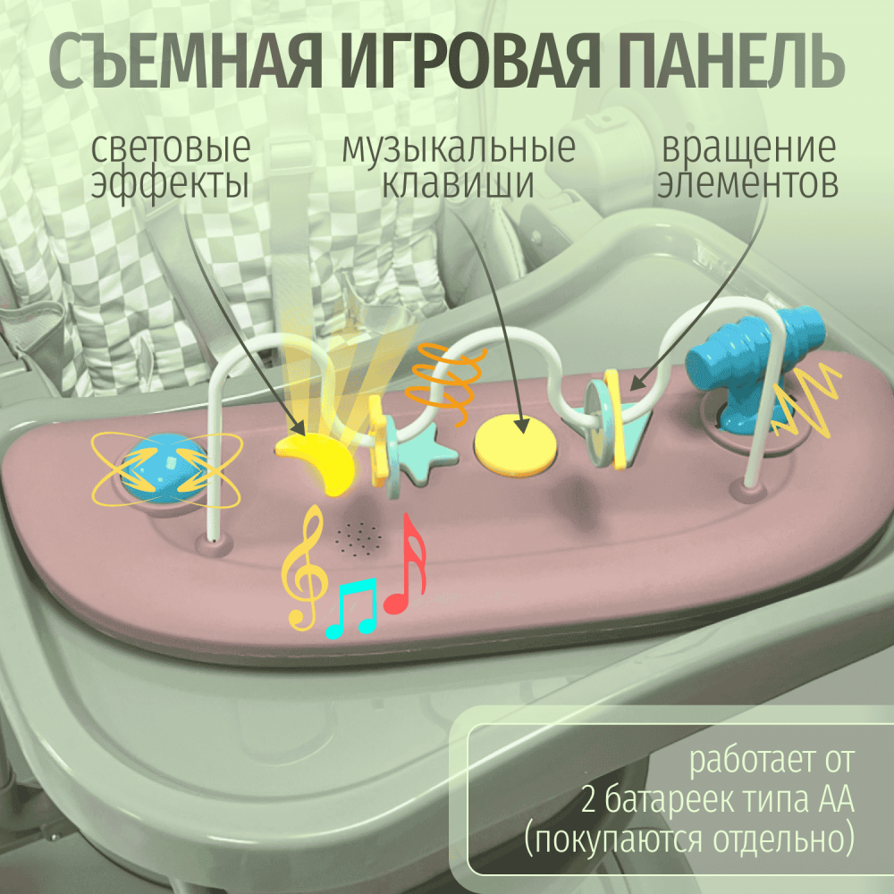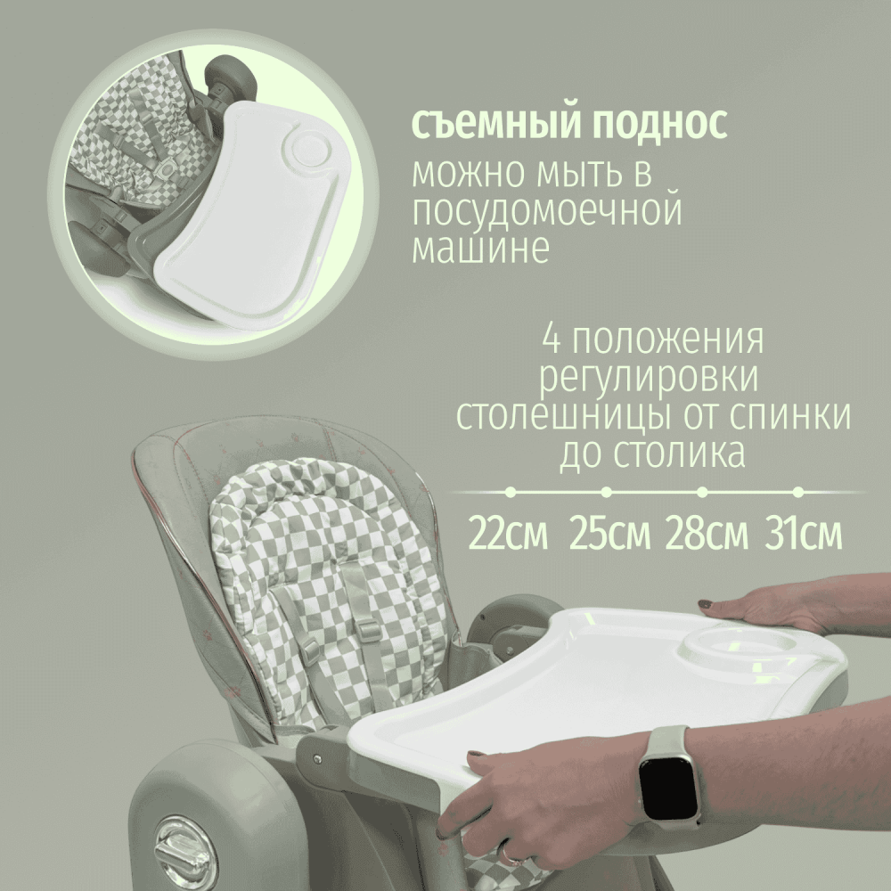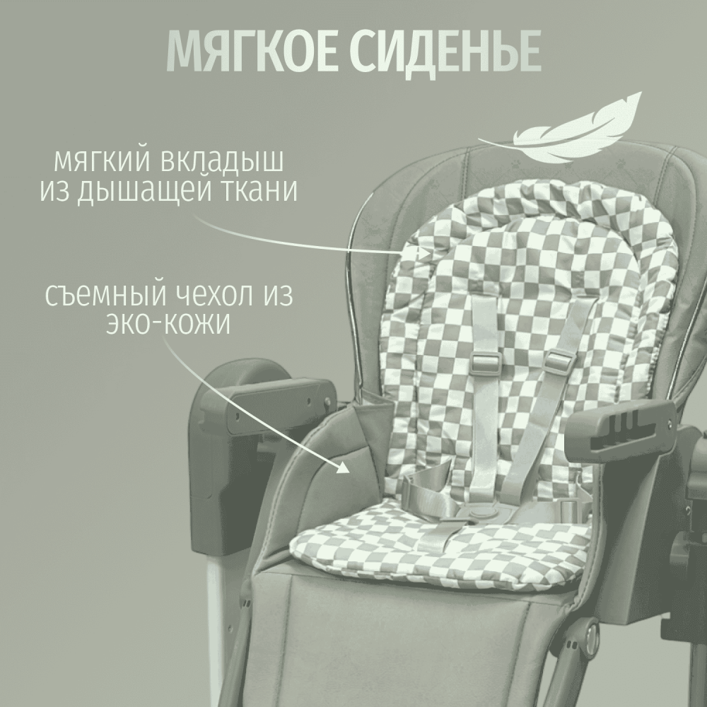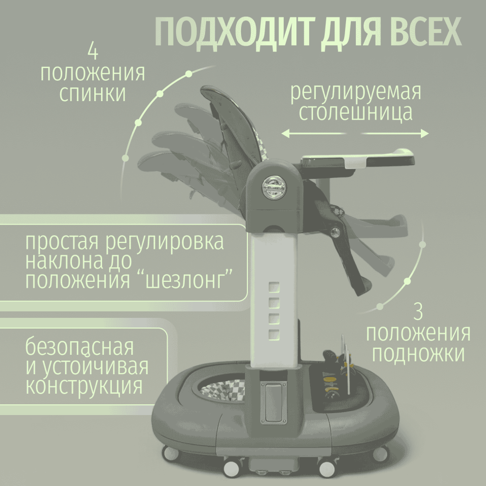 - 3. Комфорт и защита вашего чада. Регулируемый наклон спинки и удобный съёмный столик обеспечивают идеальные условия независимо от возраста ребенка. Пятиточечный ремень безопасности гарантирует надежную фиксацию, а материалы изделия просты в уходе благодаря легкой стирке чехлов.