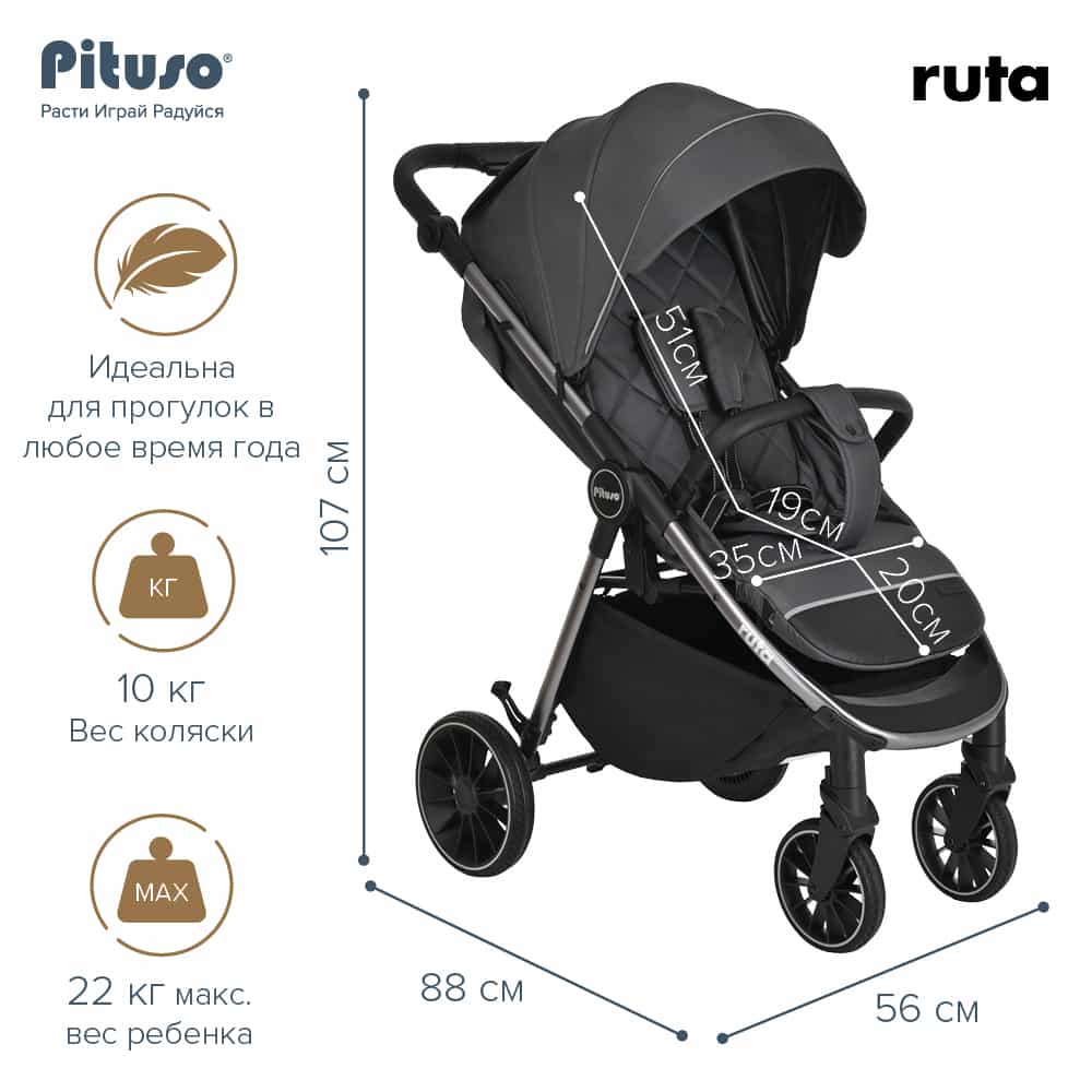 Прогулочная коляска Pituso Ruta Dark Grey Темно-Серый (PU) BD206/Dark Grey