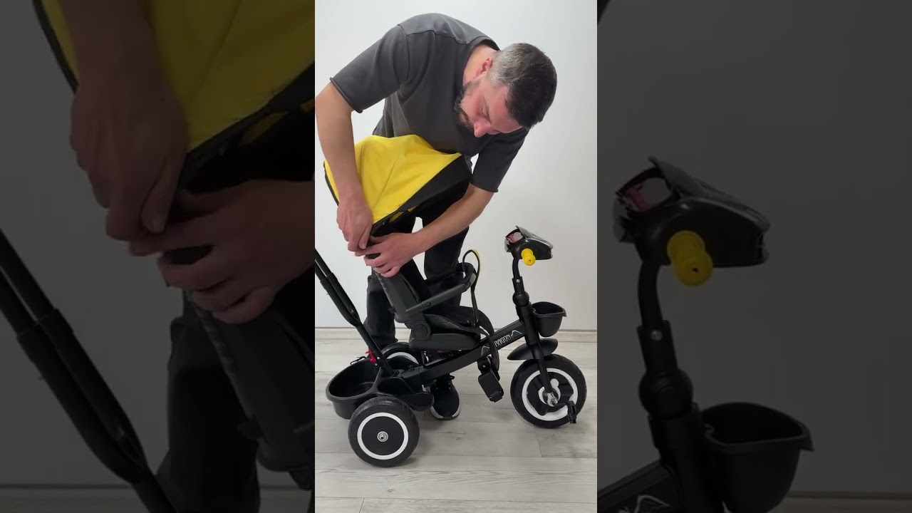- Комплектация: съемный капюшон, музыкальная панель, сумка для мелочей, багажная корзина, съемные педали, корзинка на руле