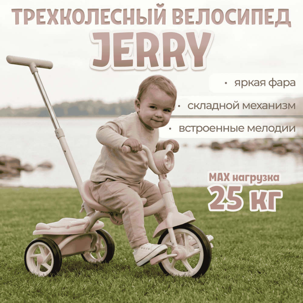 Детский велосипед BubaGo Jerry (Ручка-толкатель, фара. Складной) розовый