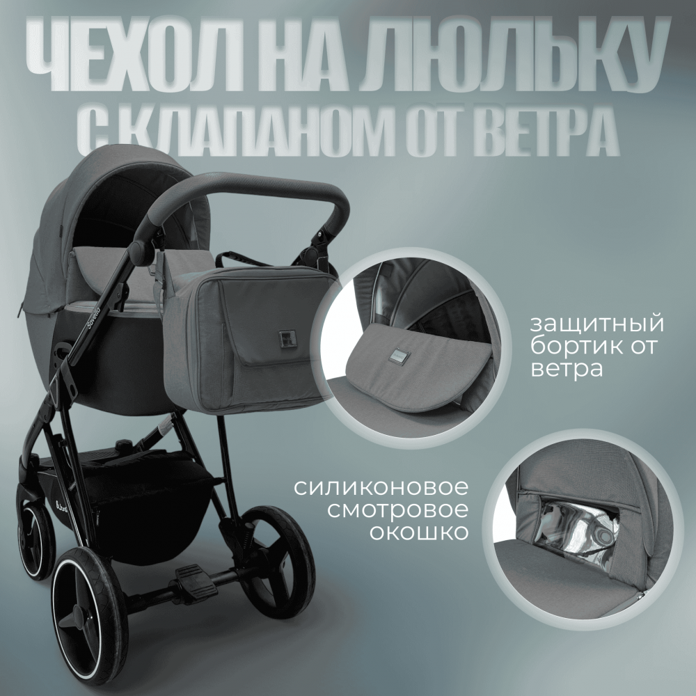 - Экстраглубокий капор оснащён противоветровым клапаном со смотровым окошком на магнитах, а боковые молнии с секцией проветривания позволяют легко регулировать микроклимат внутри люльки.