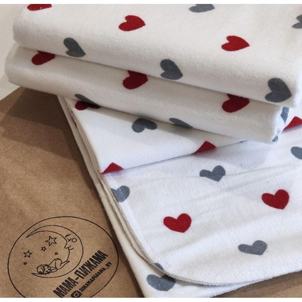 Непромокаемая многоразовая пеленка фланель 60х90 см Сердечки красно / серый