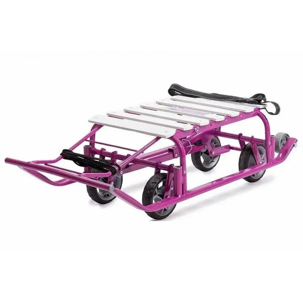 Санки универсальные специально созданы для комфортного передвижения в условиях современного города. Нажав на педаль, вы опустите колеса и сможете катить санки по гладкому асфальту или полу (например, в магазине или в подъезде). Еще одно нажатие – и санки снова скользят по снегу. Санки детские с механизмом выдвижных колесных шасси.