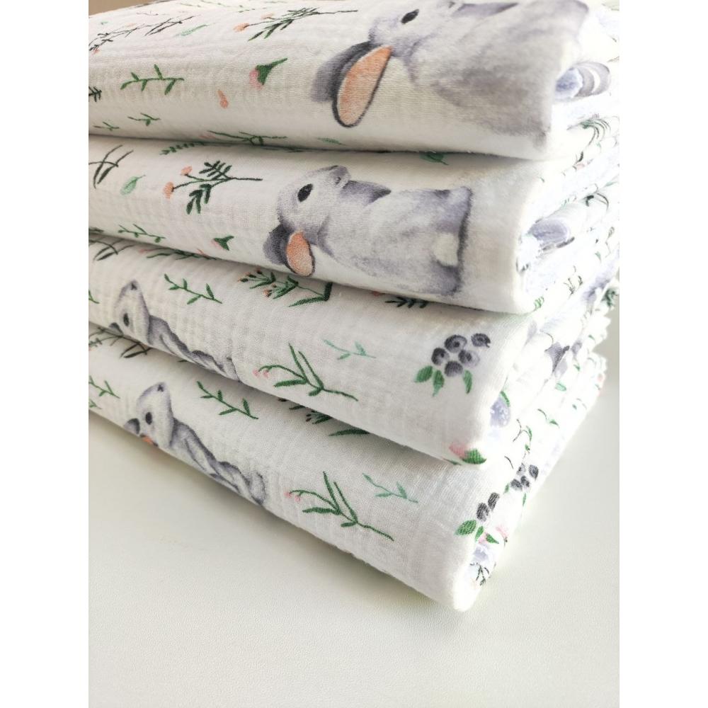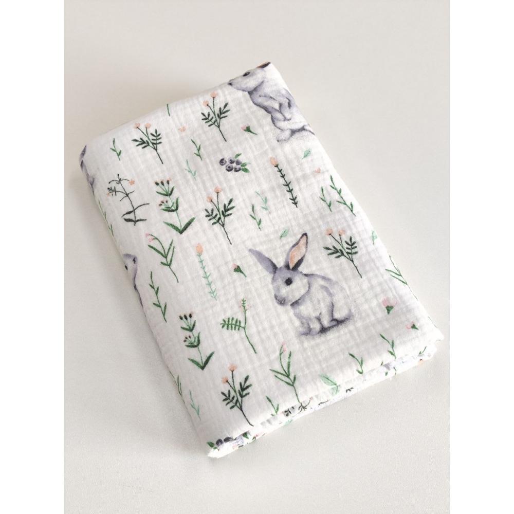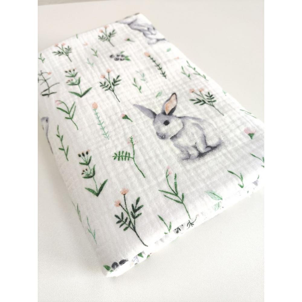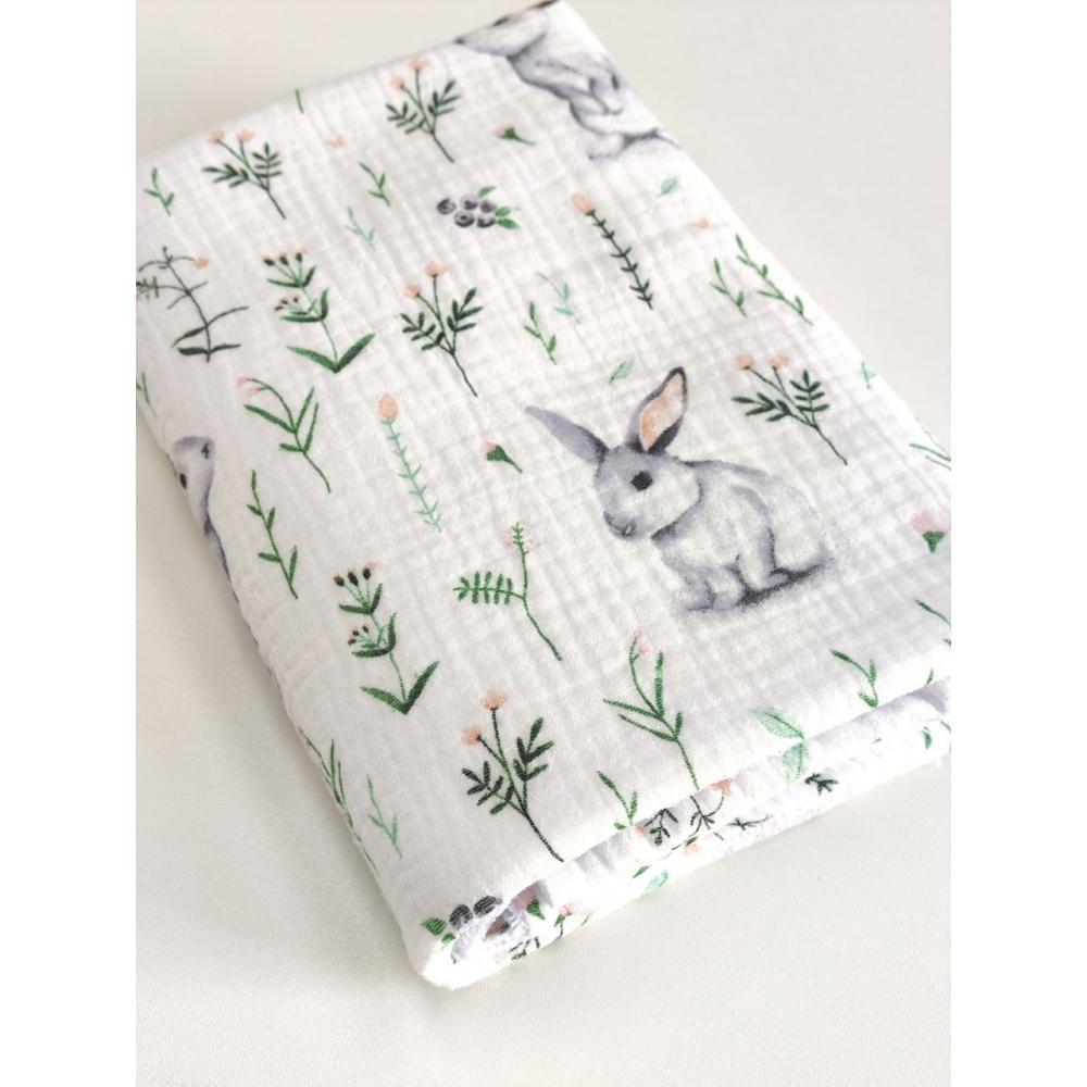 Непромокаемая многоразовая пеленка муслин 60х90 см Зайки