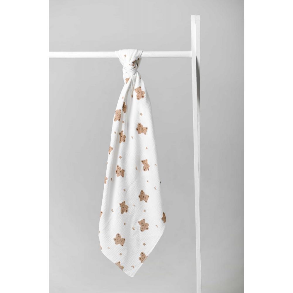 Пеленка муслиновая 100х110 см Мишки (жатка) (ТМ Пеленкино)