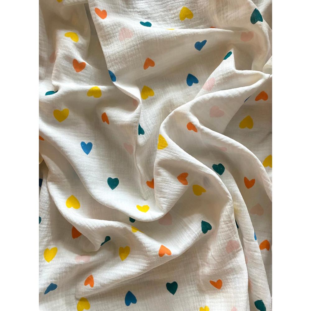 Пеленка муслиновая 100х110 см Сердечки (жатка) (ТМ Пеленкино)
