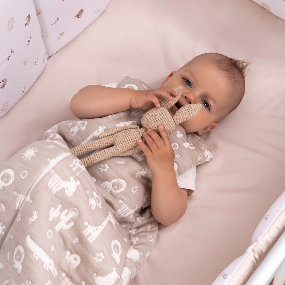 Материал спальника - высококачественный трехслойный жаккард, 100% эко хлопок. Он легкий, воздушный и невероятно приятный на ощупь. Ткань прекрасно впитывает влагу, быстро сохнет и сохраняет свою мягкость и цвет даже после множества стирок. Кокон из воздухопроницаемой ткани может служить альтернативой одеялу. Он защитит вашего малыша от холода и перегрева, обеспечивая оптимальную терморегуляцию. Свободный крой дает возможность ребенку легко двигаться, исключая риск запутаться. Вы можете быть уверены, что ваш малютка всегда укрыт и чувствует себя комфортно.